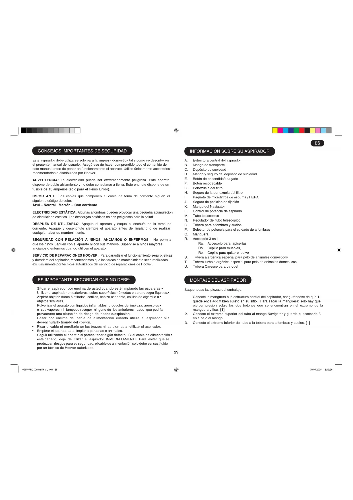 Xarion TAV 1620 - Aspiradora HOOVER - Manual de uso y guía de instrucciones gratis