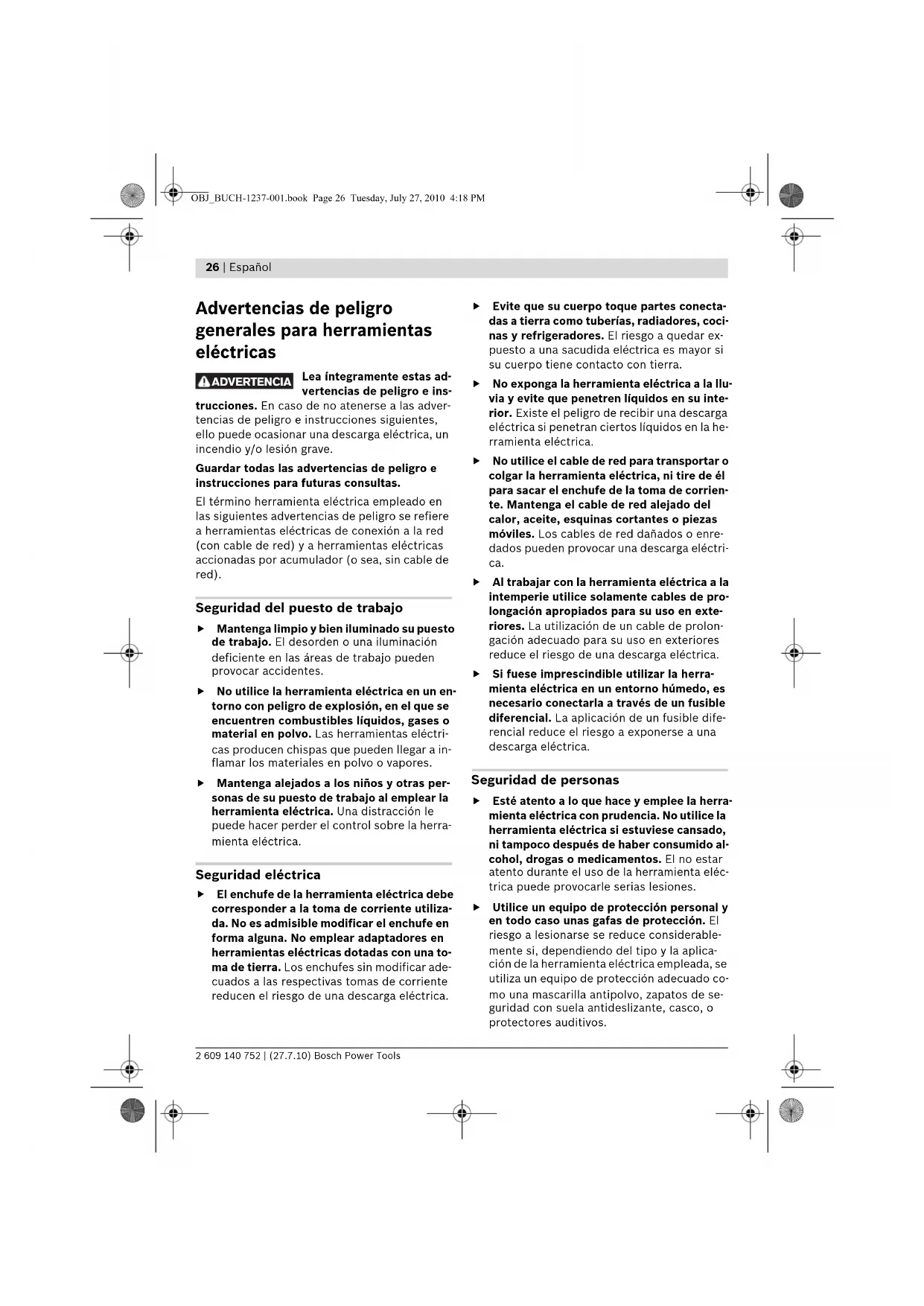 ADVERTENCIA OBJ_BUCH-1237-001.book Page 26 Tuesday, July 27, 2010 4:18 PMEspañol | 27