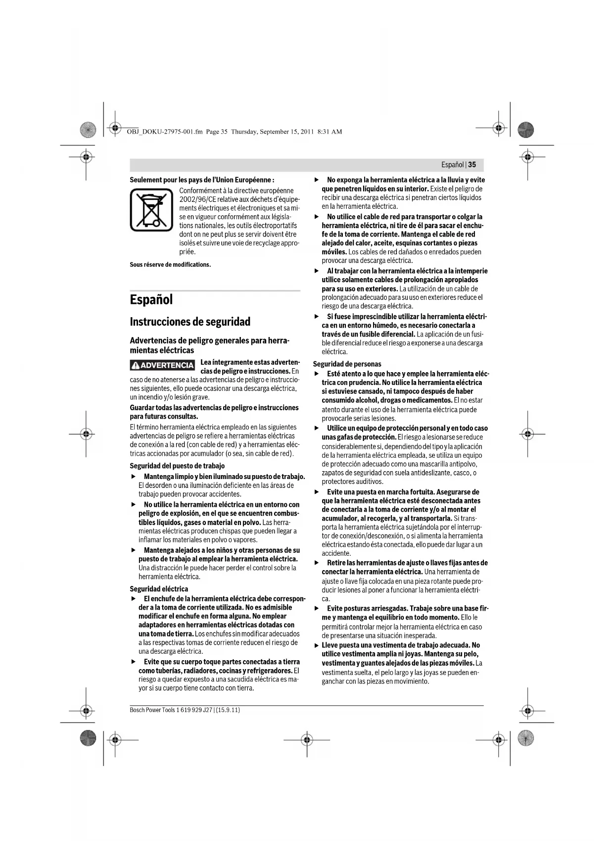 1 619 929 J27 | (15.9.11) Bosch Power Tools