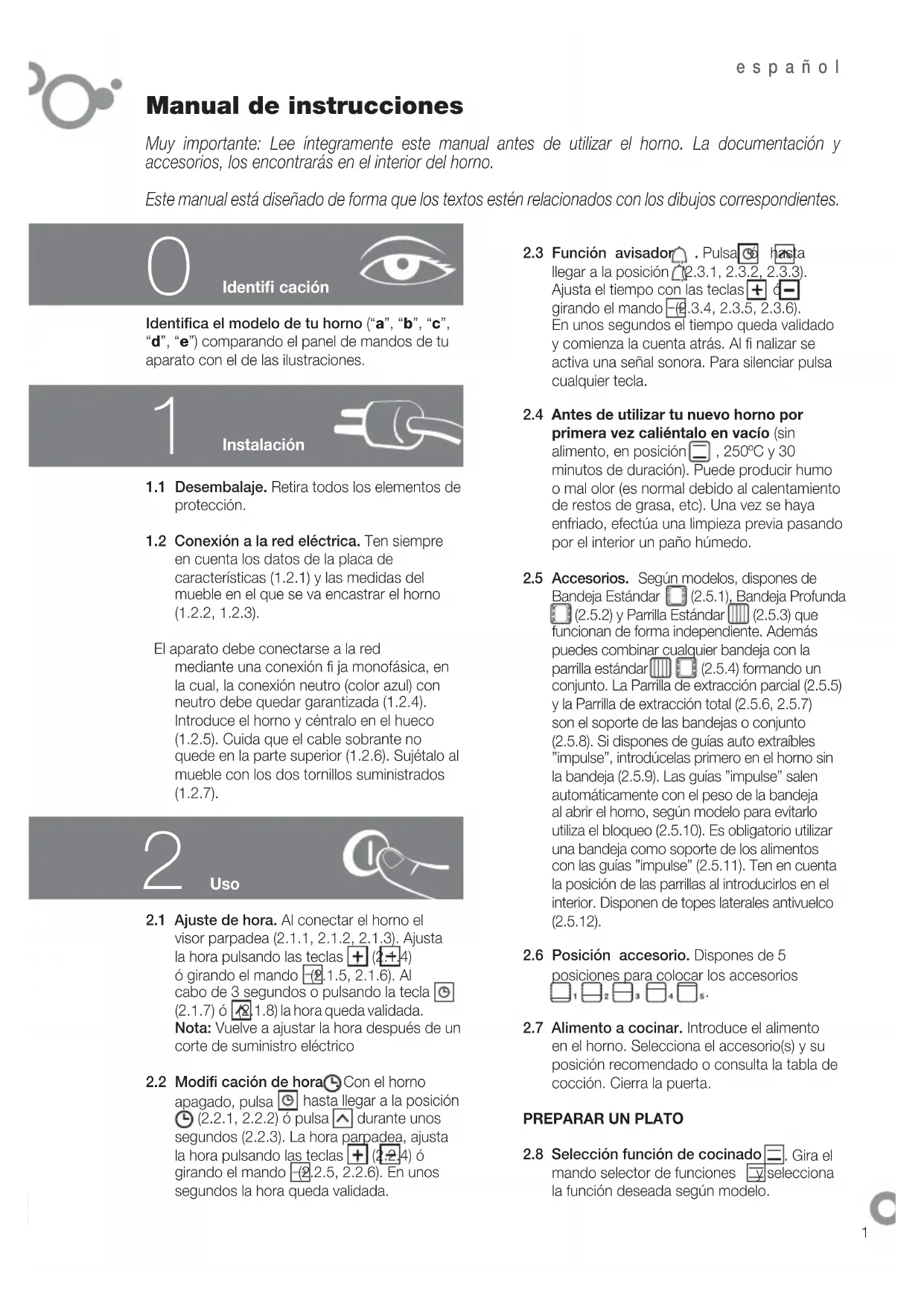 Muy importante: Lee íntegramente este manual antes de utilizar el horno. La documentación y
