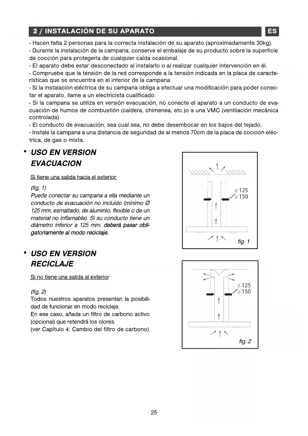 - Si la campana se utiliza en versión evacuación, no conecte el aparato a un conducto de eva-