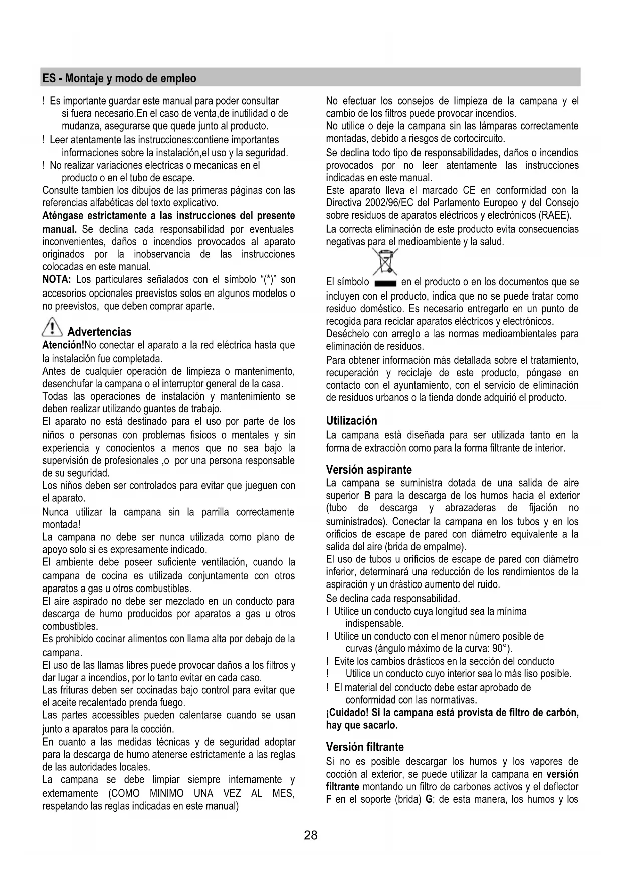 incendio. El fabricante recomienda leerlas y respetarlas