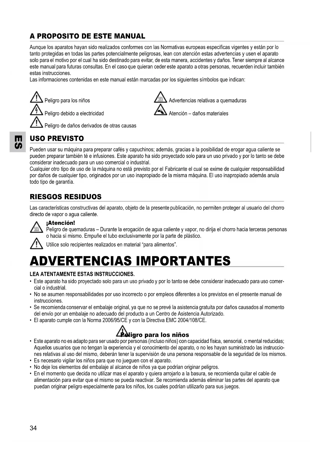 ES A PROPOSITO DE ESTE MANUAL Aunque los aparatos hayan sido realizados conformes con las Normativas europeas especicas vigentes y están por lo
