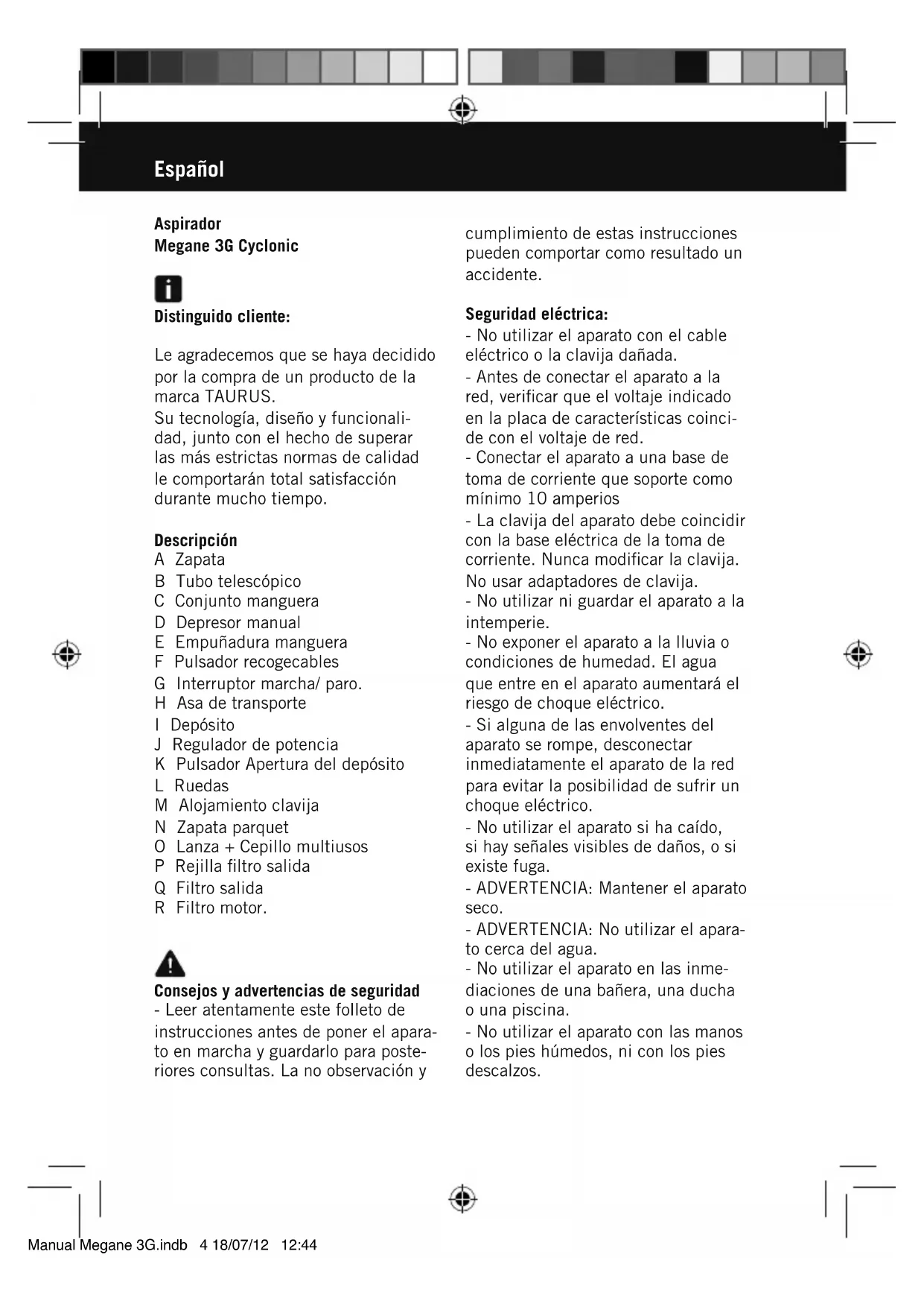 Megane 3G Cyclonic - Aspiradora TAURUS - Manual de uso y guía de instrucciones gratis