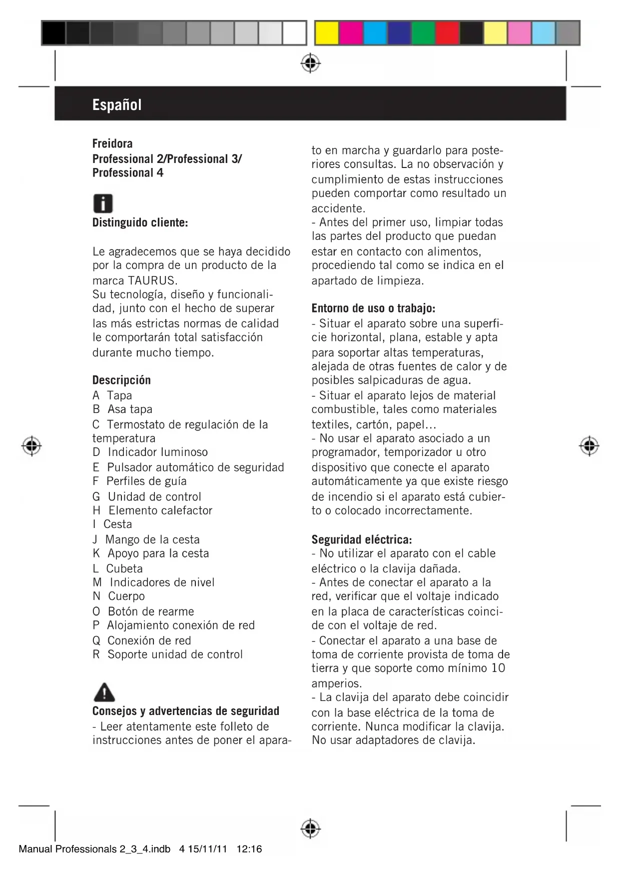 Encuentra gratis el manual del aparato Professional 3L TAURUS en formato PDF.
