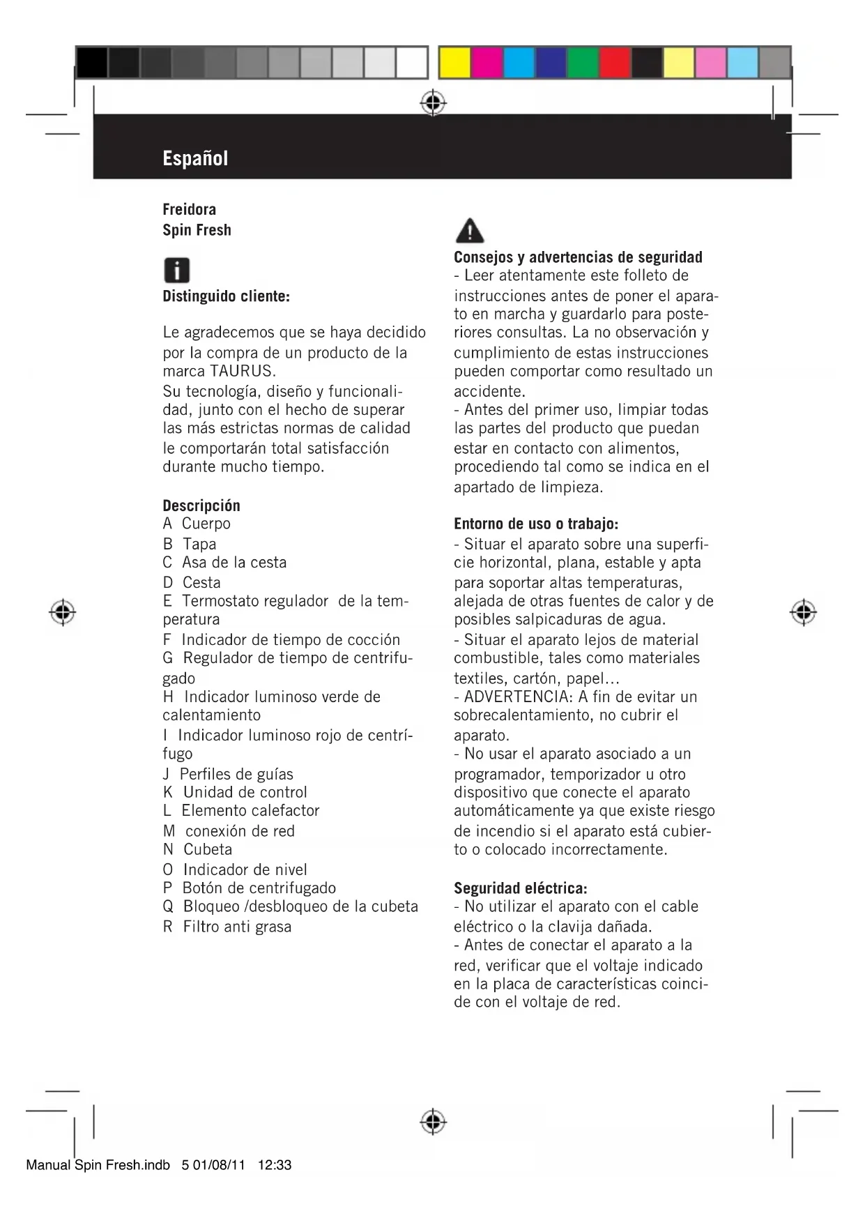 Spin Fresh - Freidora TAURUS - Manual de uso y guía de instrucciones gratis