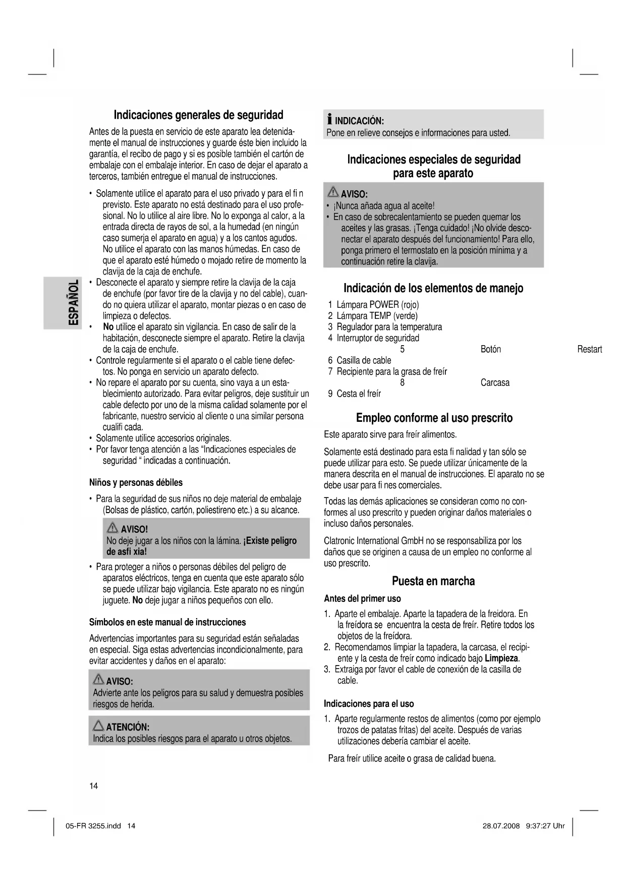 FR 3255 - Freidora CLATRONIC - Manual de uso y guía de instrucciones gratis