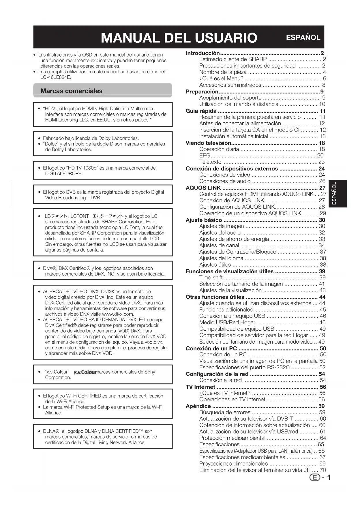 MANUAL DE USUARIO LC46LE824EV SHARP
