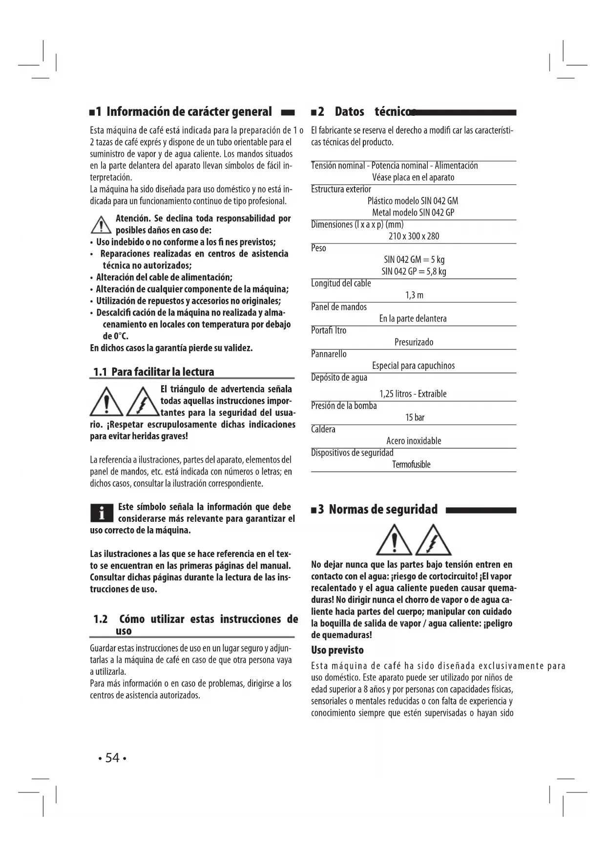 rro de vapor recalentado y/o de agua caliente. No tocar direc-