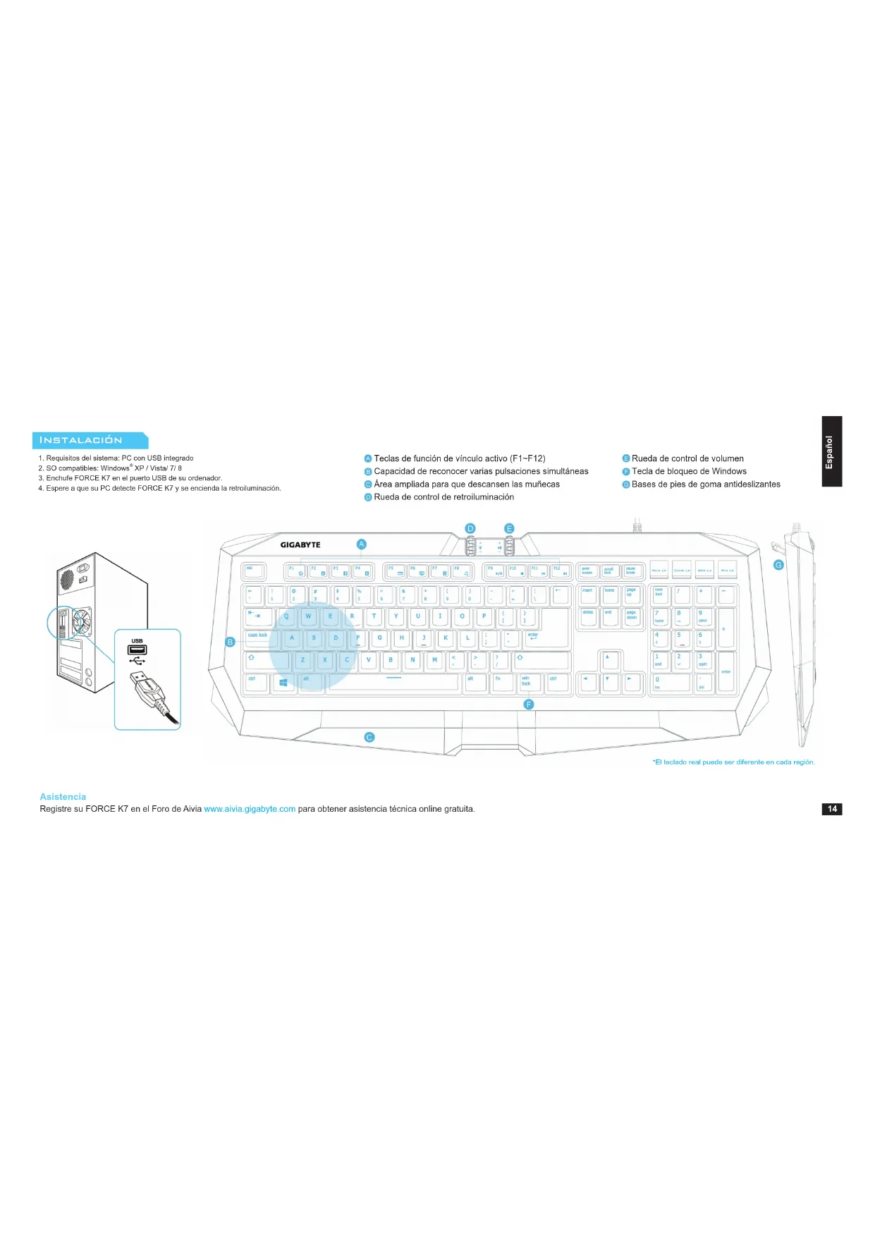 Registre su FORCE K7 en el Foro de Aivia www.aivia.gigabyte.com para obtener asistencia técnica online gratuita.