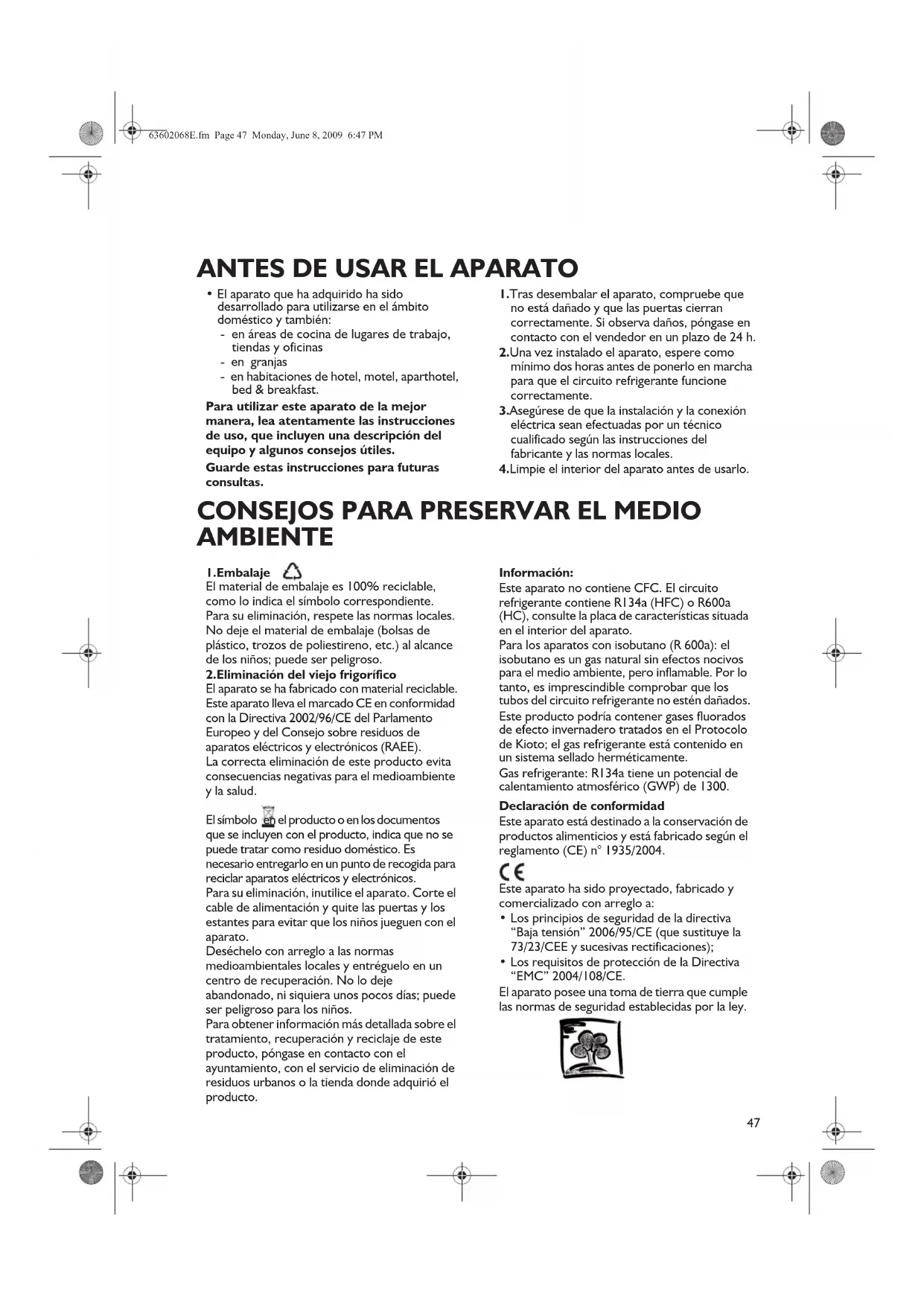 ANTES DE USAR EL APARATO CONSEJOS PARA PRESERVAR EL MEDIO AMBIENTE