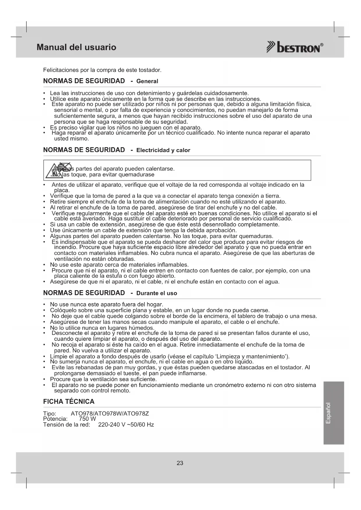 MANUAL DE USUARIO ATO978 BESTRON