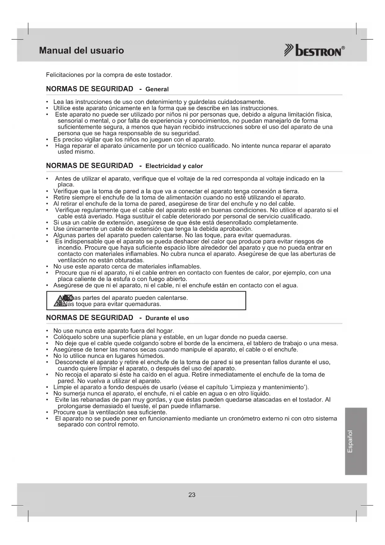 AYT600 - Tostadora BESTRON - Manual de uso y guía de instrucciones gratis