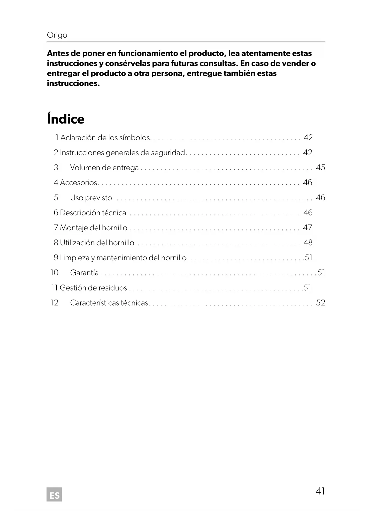 Origo_2000_4100.book Seite 42 Freitag, 6. Januar 2017 11:40 11ES Origo Instrucciones generales de seguridad