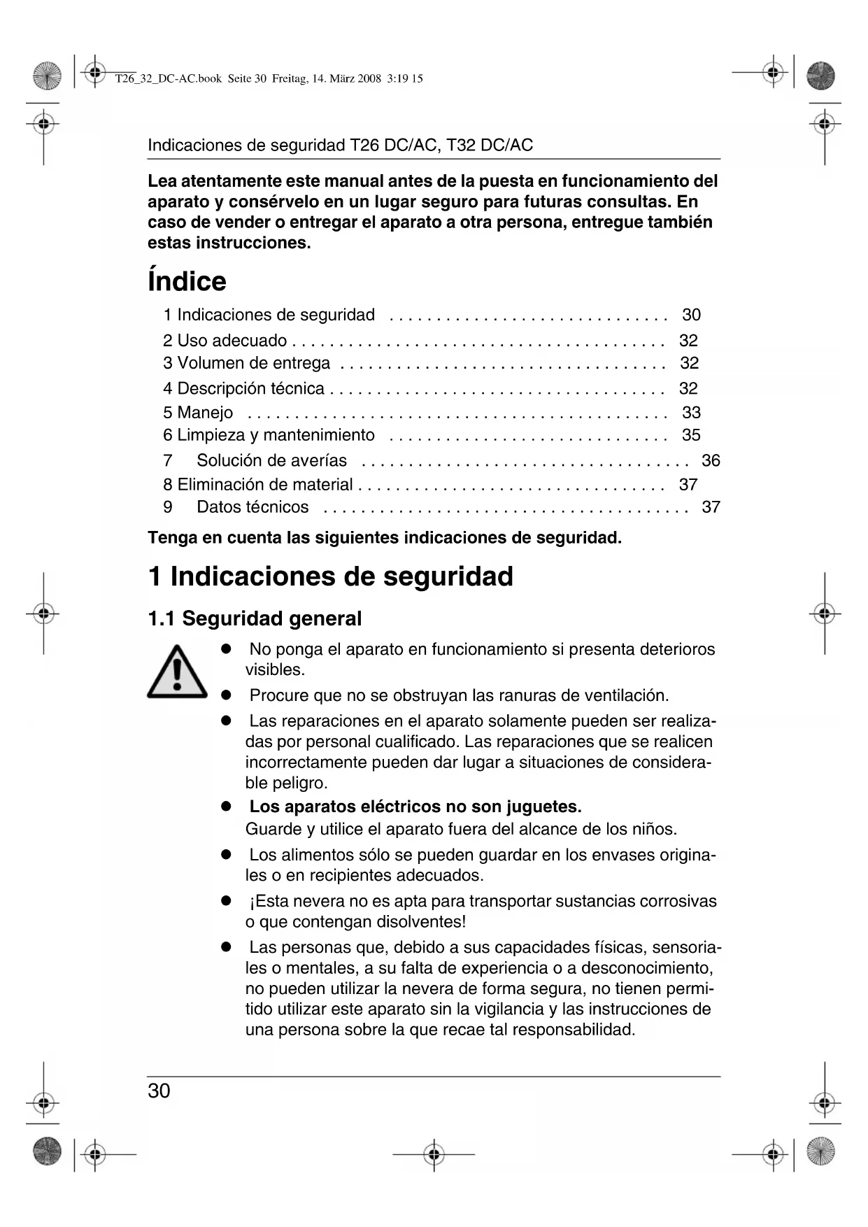 T26_32_DC-AC.book Seite 30 Freitag, 14. März 2008 3:19 15T26 DC/AC, T32 DC/AC Indicaciones de seguridad