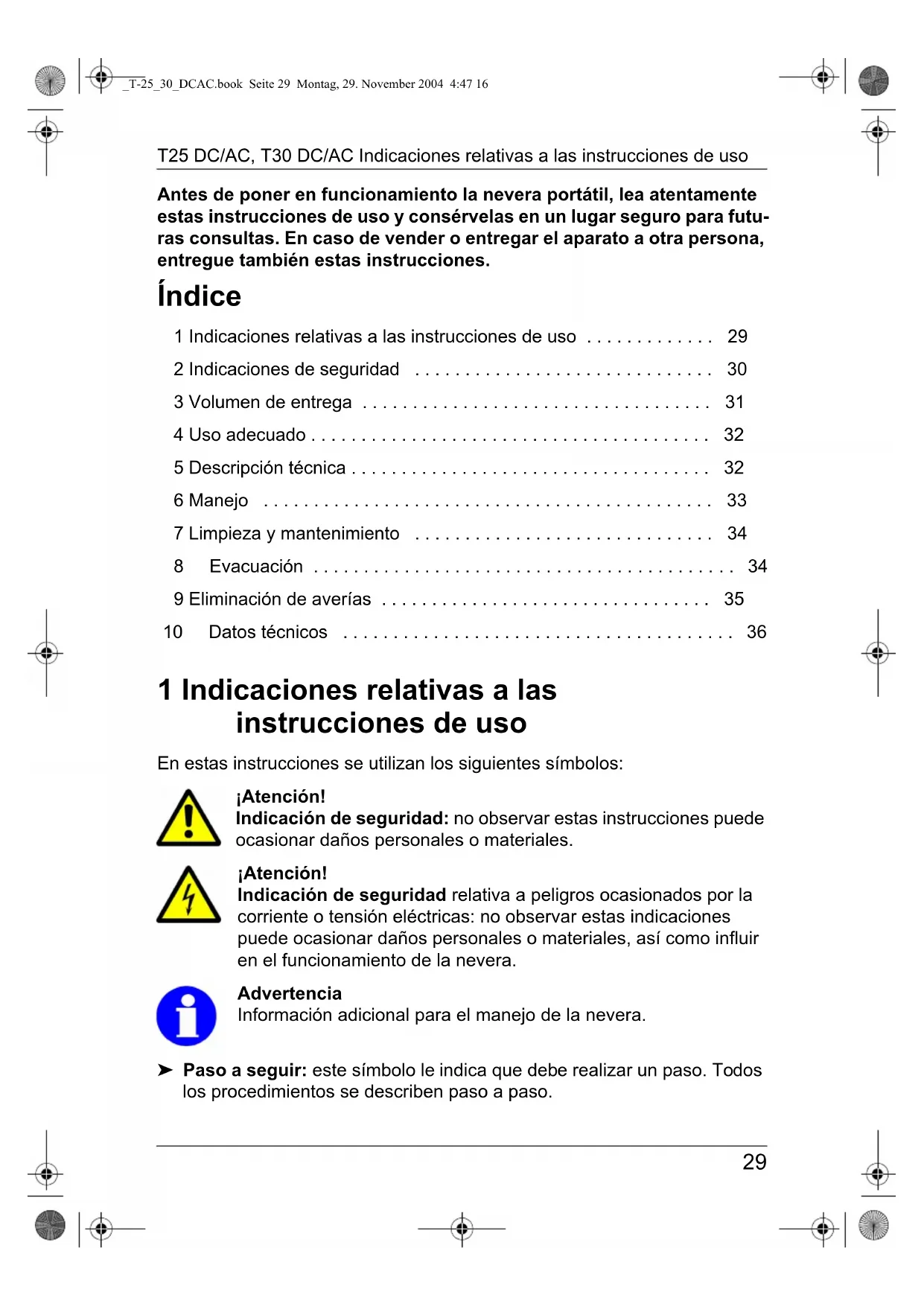 _T-25_30_DCAC.book Seite 29 Montag, 29. November 2004 4:47 16Indicaciones de seguridad T25 DC/AC, T30 DC/AC