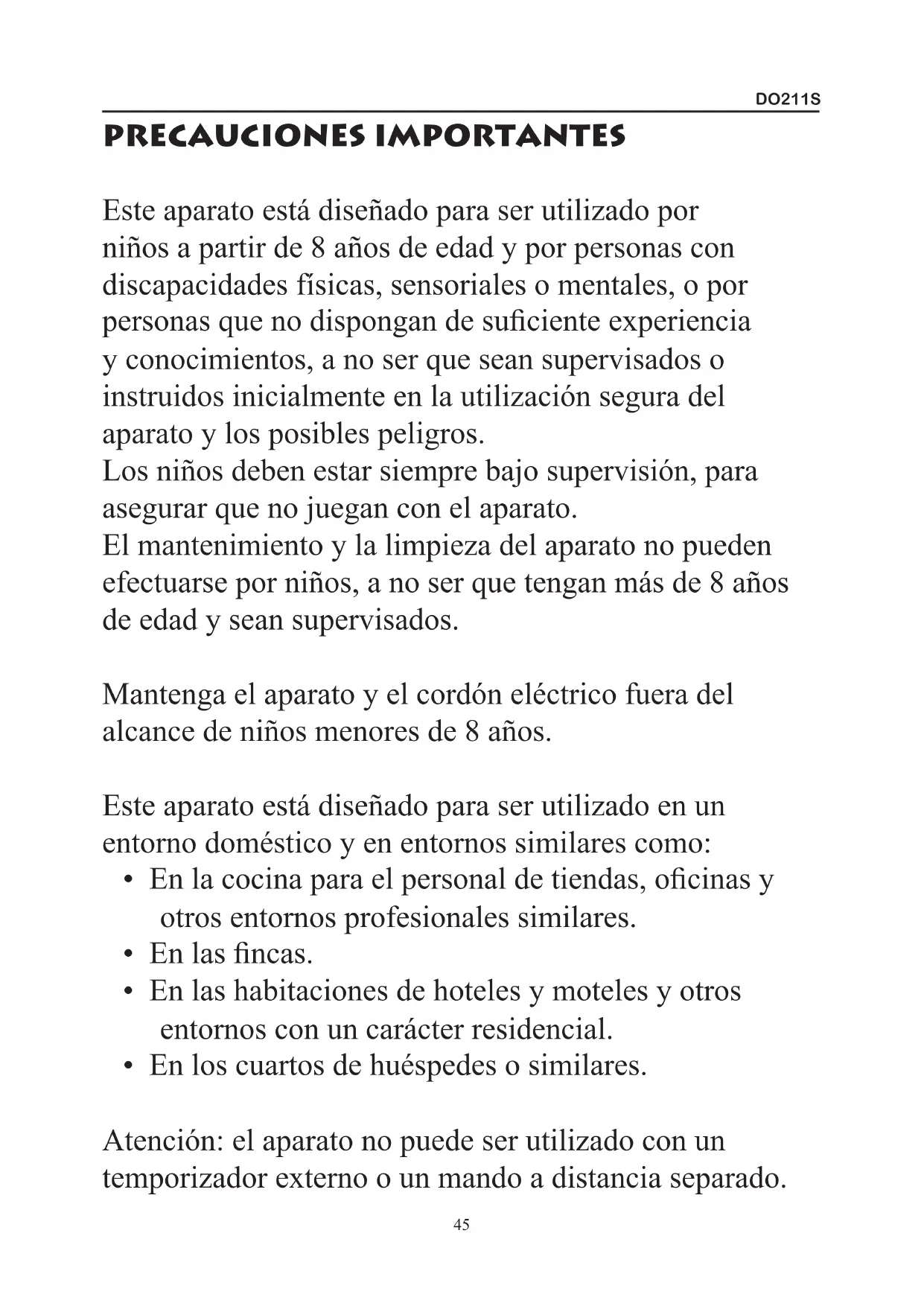 PRECAUCIONES IMPORTANTES Este aparato está diseñado para ser utilizado por