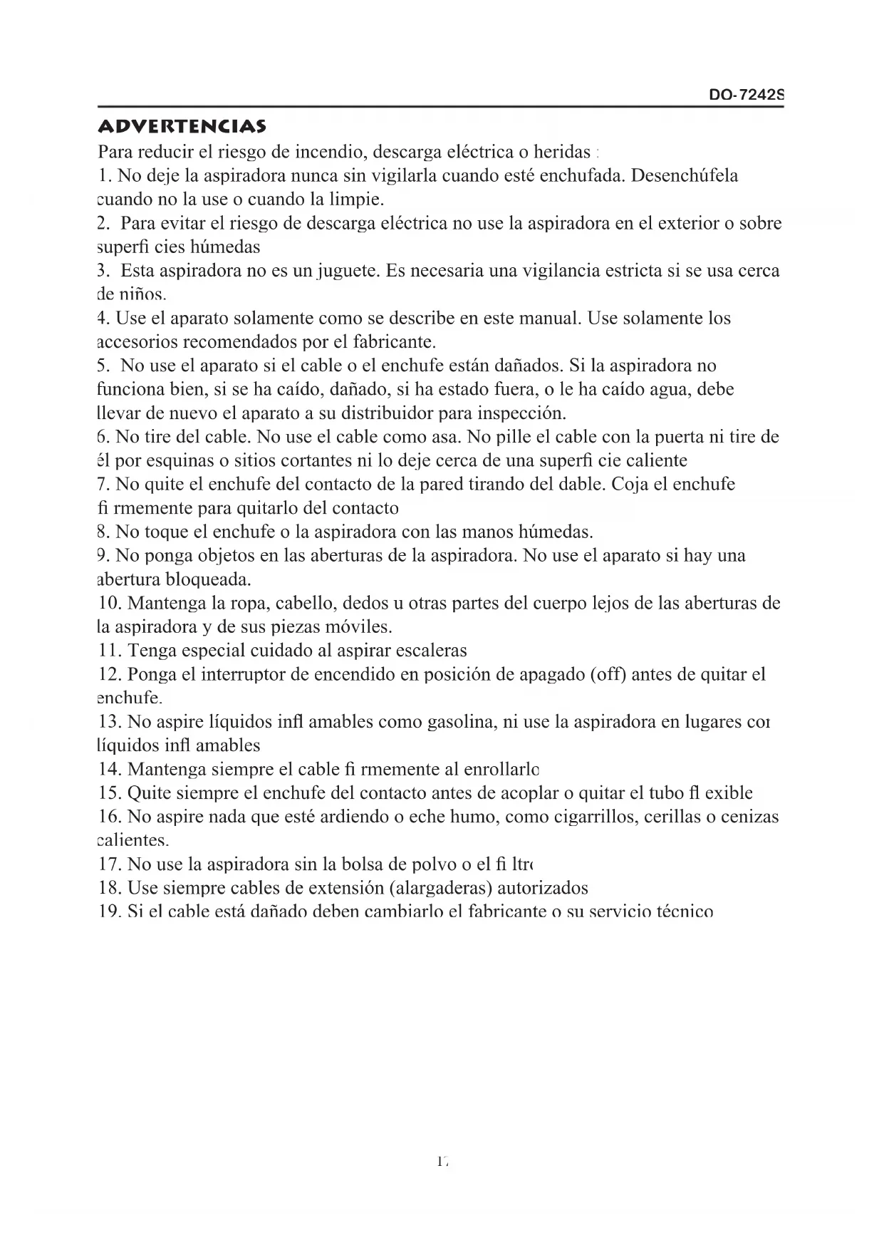 19. Si el cable está dañado deben cambiarlo el fabricante o su servicio técnicoDO-7242S