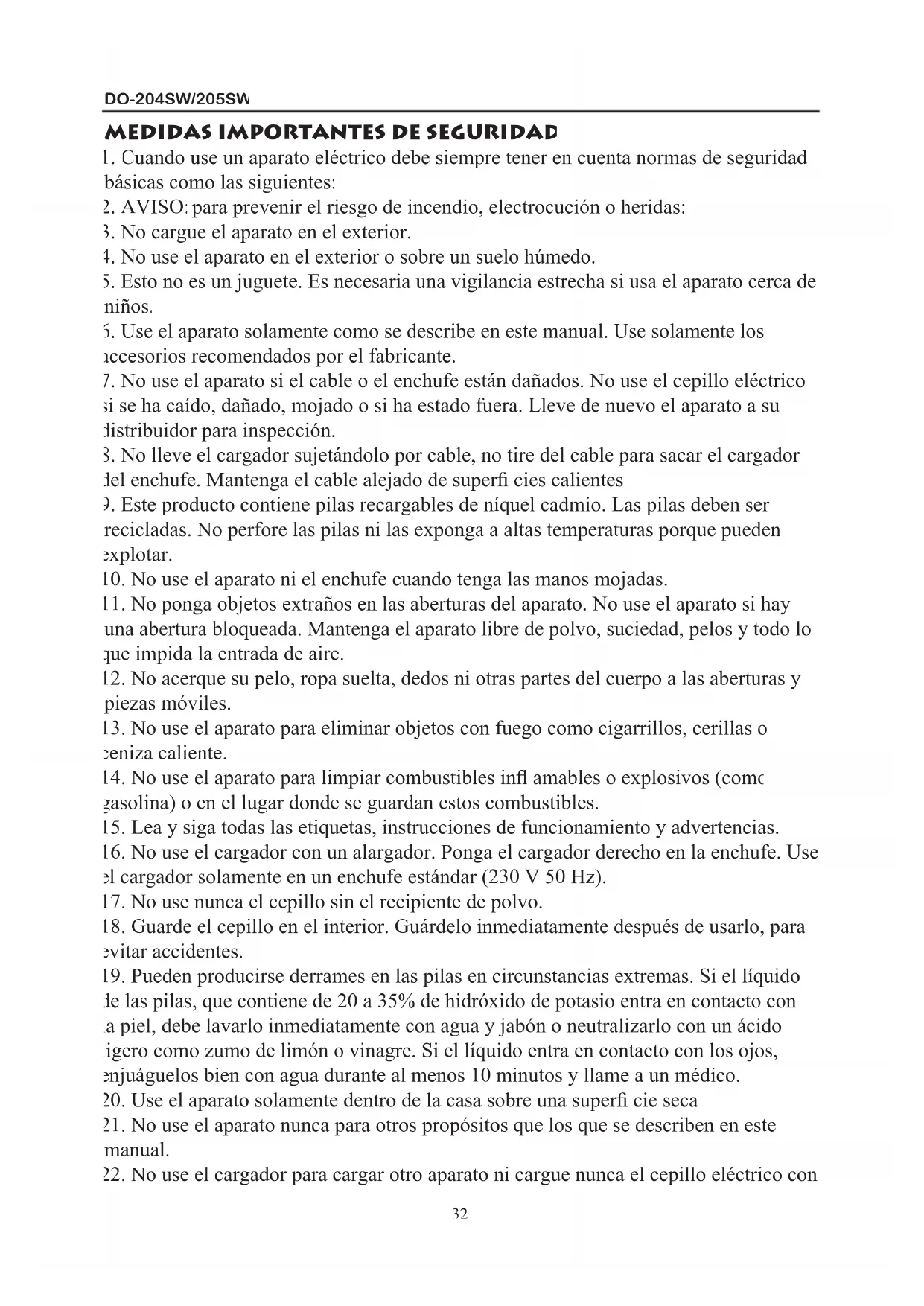 22. No use el cargador para cargar otro aparato ni cargue nunca el cepillo eléctrico con