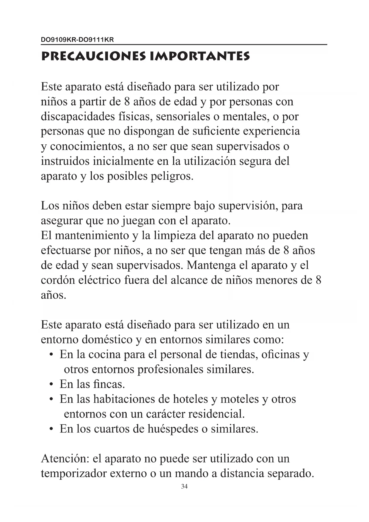 • Utilice el aparato sólo para el n para el que se haDO9109KR-DO9111KR
