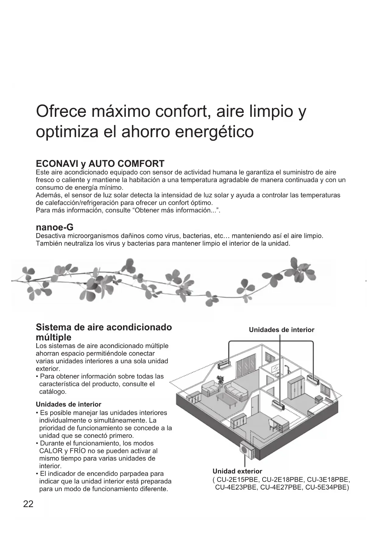 ECONAVI y AUTO COMFORT Este aire acondicionado equipado con sensor de actividad humana le garantiza el suministro de aire