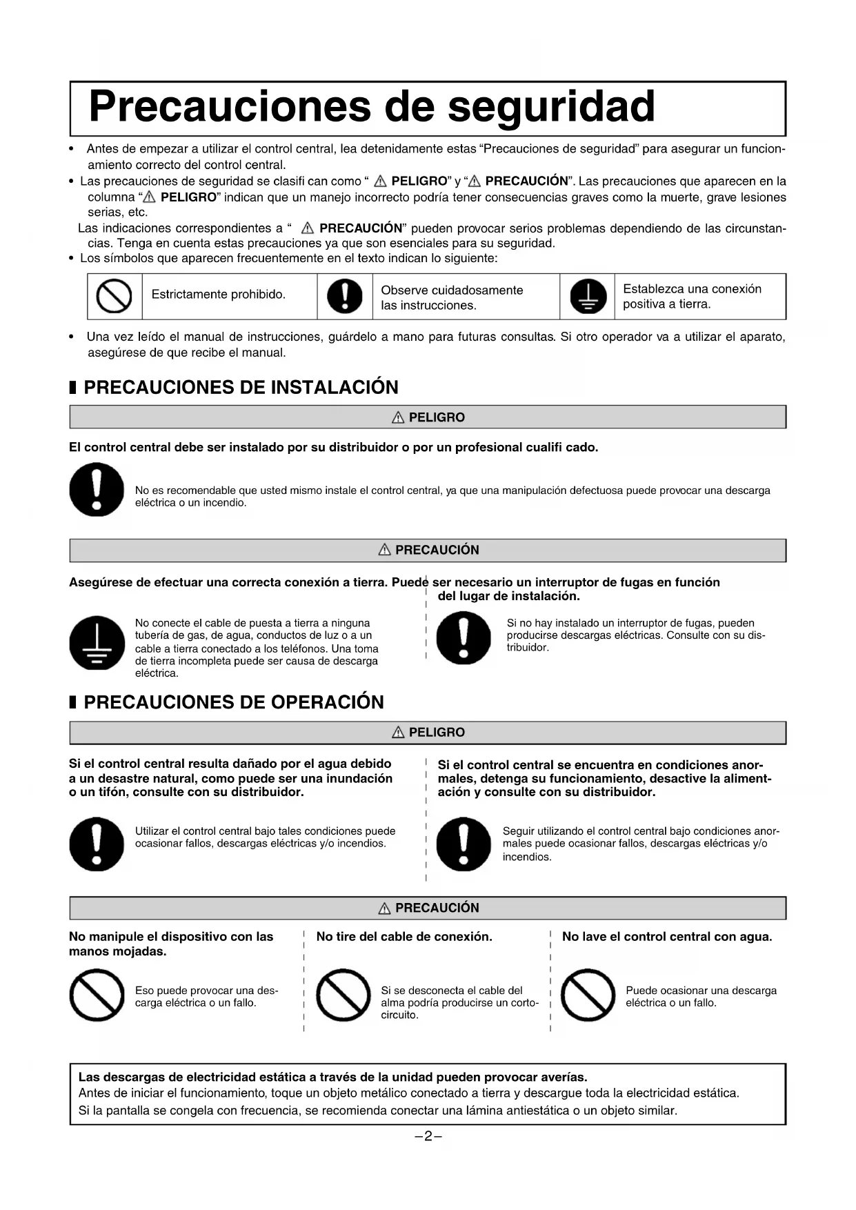 • Antes de empezar a utilizar el control central, lea detenidamente estas “Precauciones de seguridad” para asegurar un funcion-