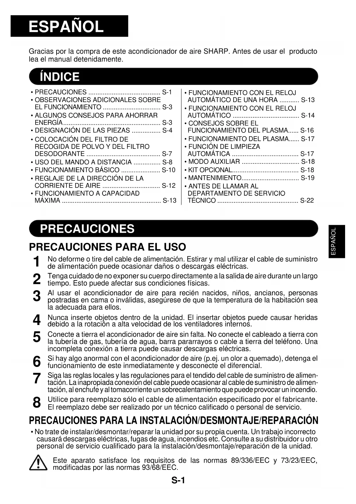 -ESPAÑOL S-9 PRECAUCIÓN