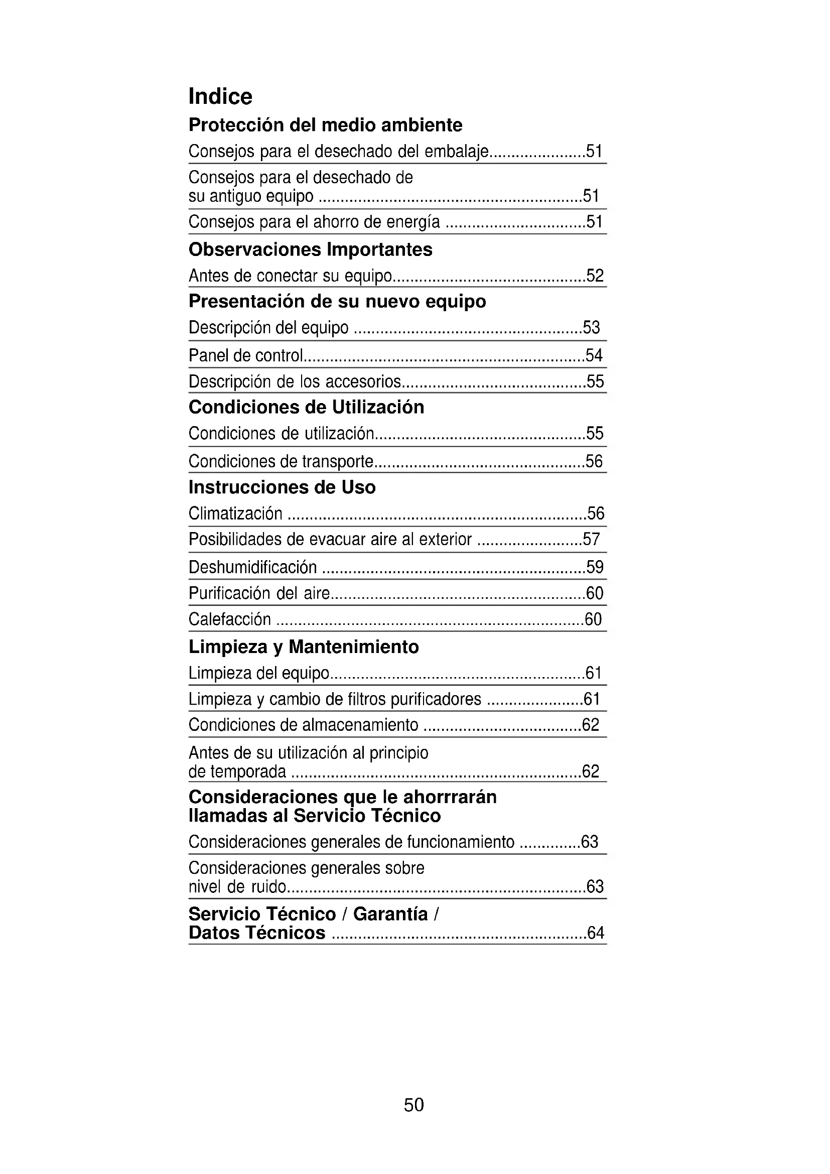 - Consideraciones que le ahorrrarán llamadas al Servicio Técnico Consideraciones generales de funcionamiento p. 63
