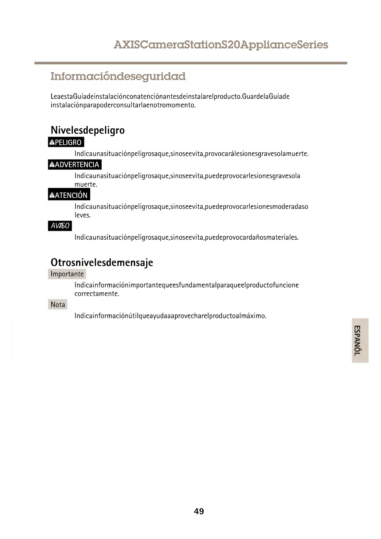 Antesdeiniciaralgunodelosprocedimientosdeestaseccion,lealainformacionede seguridaddestedocumento.Paraobtenermasinformacion,visitewww-axis.com