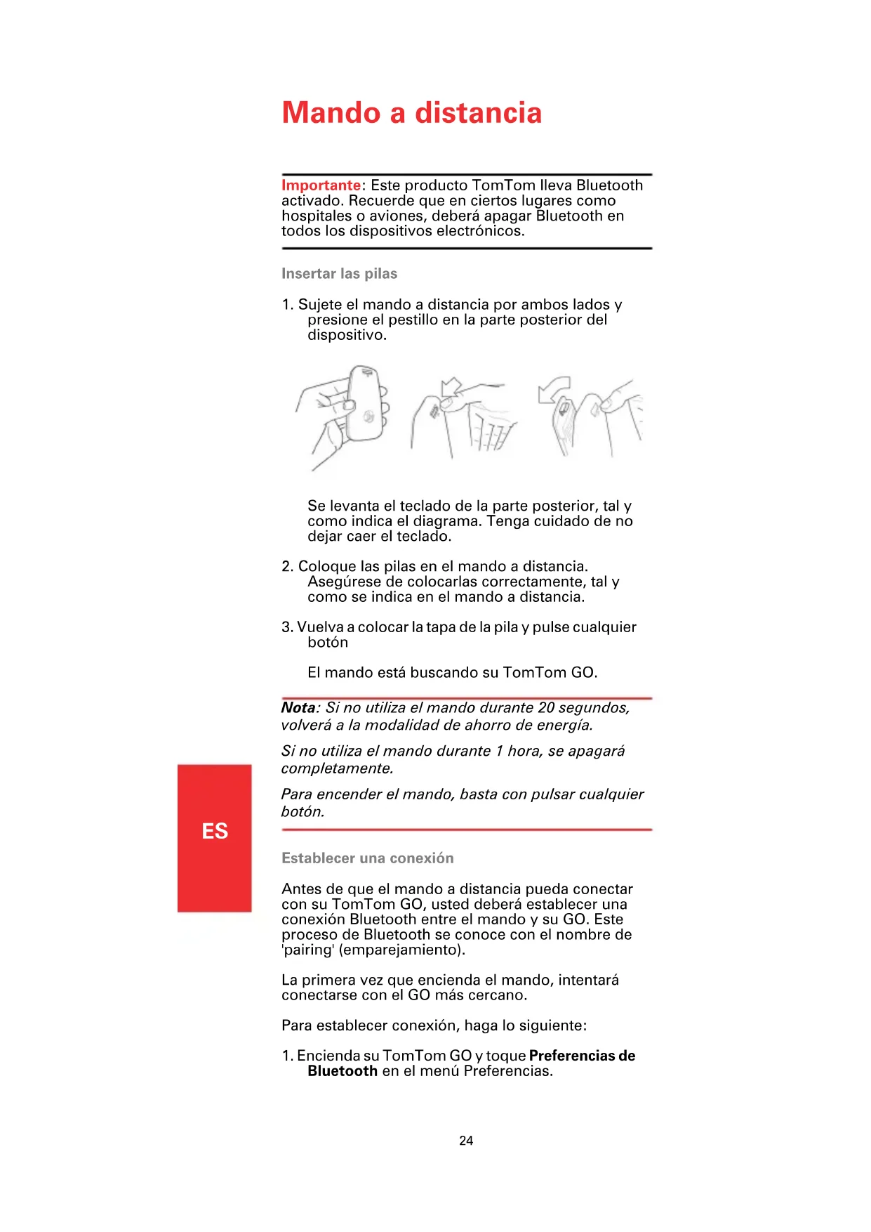 Mando a distancia Importante: Este producto TomTom lleva Bluetooth activado. Recuerde que en ciertos lugares como hospitales o aviones, deberá apagar Bluetooth en todos los dispositivos electrónicos. Insertar las pilas