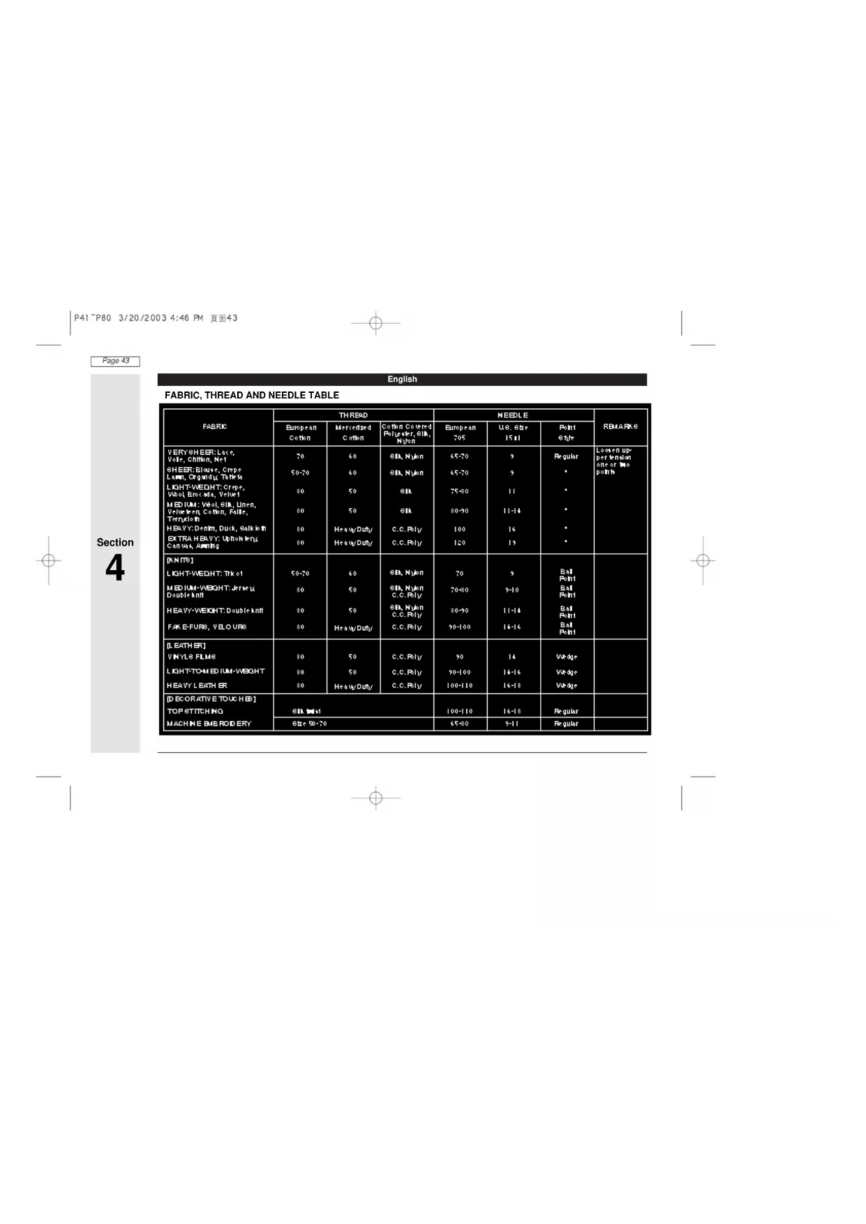 STOFF, FADEN, NADELTABELLE
