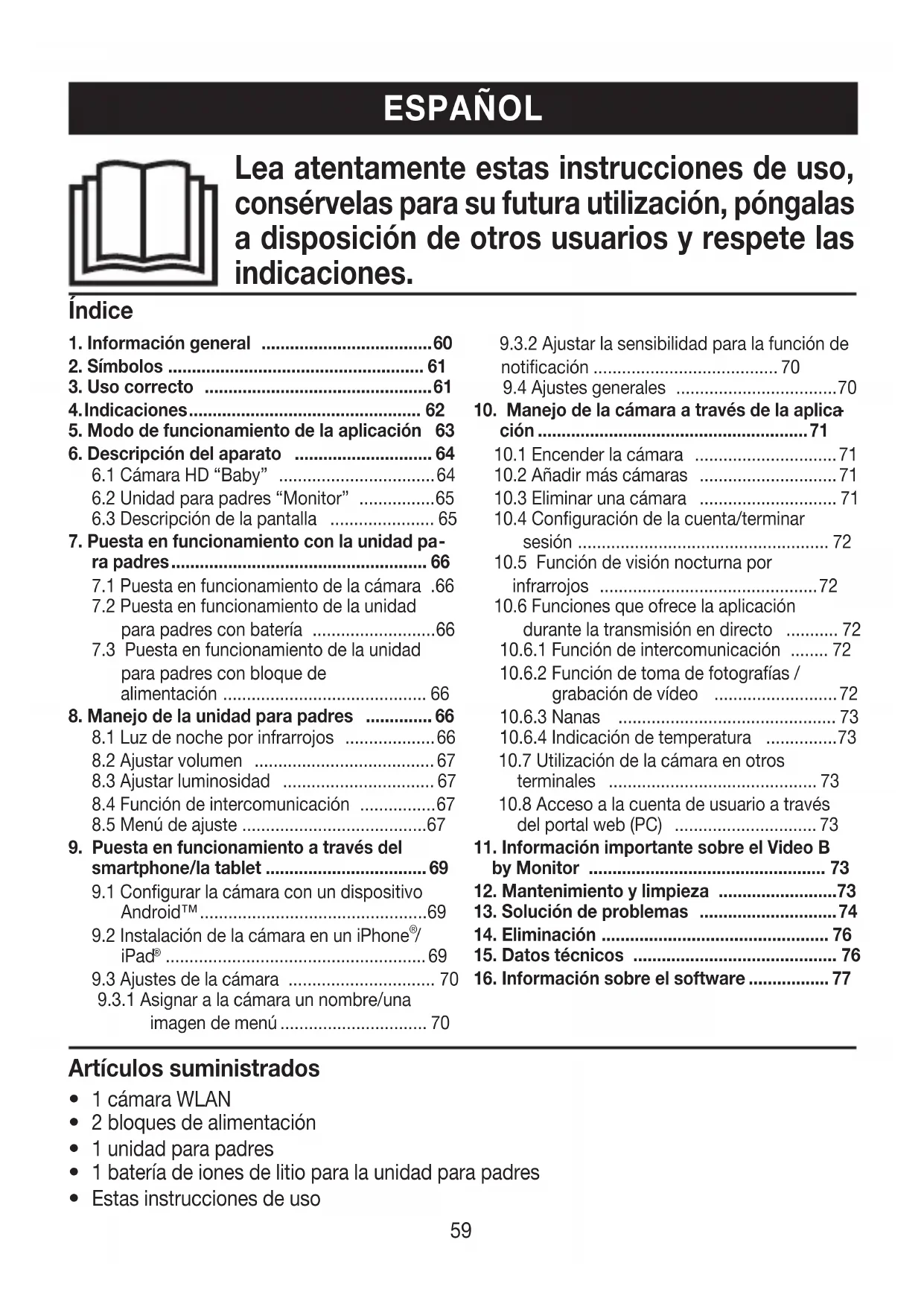 Baby Video Monitor 2 en 1 Instrucciones de uso ........... 59