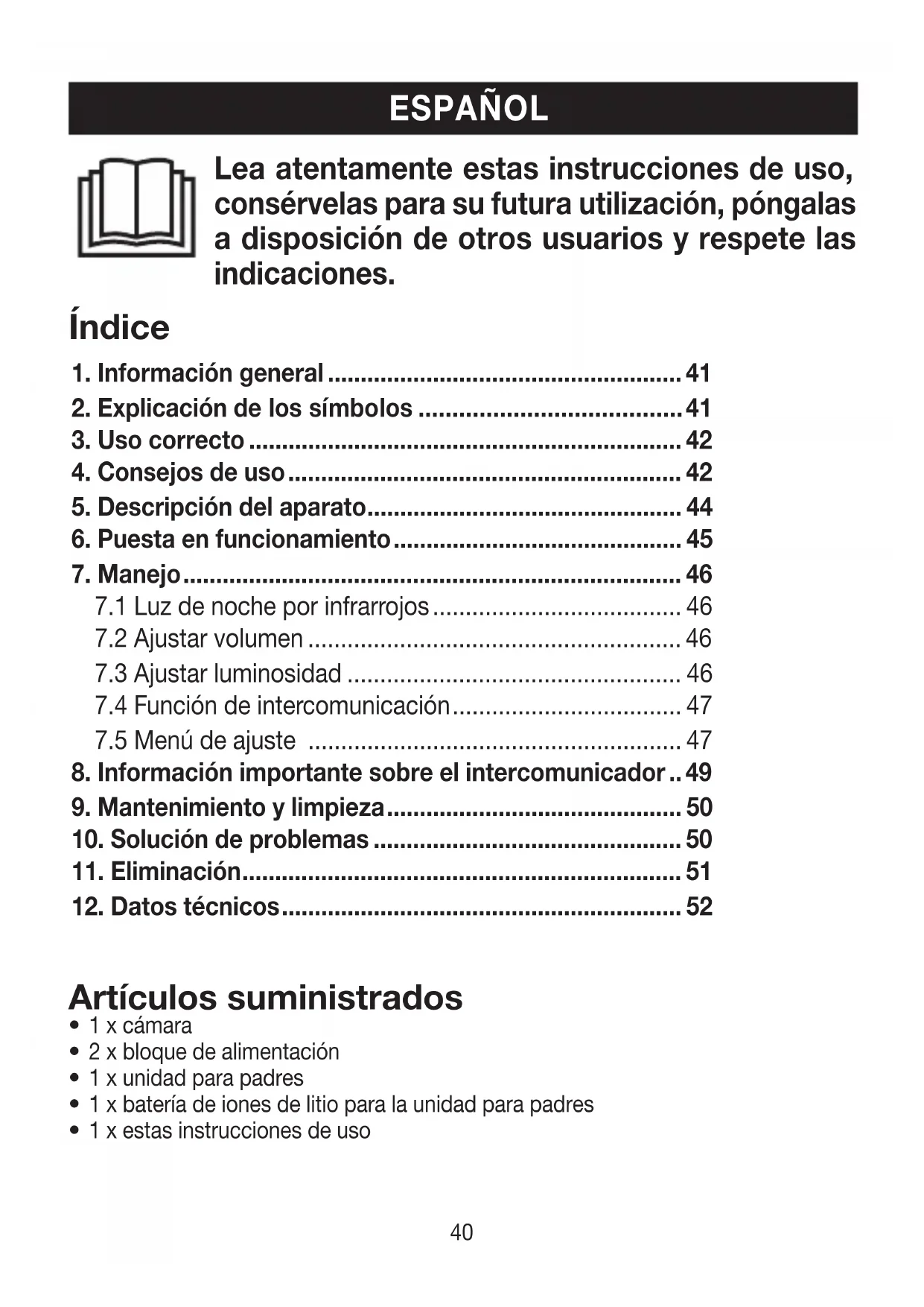8. Información importante sobre el intercomunicador .. 49