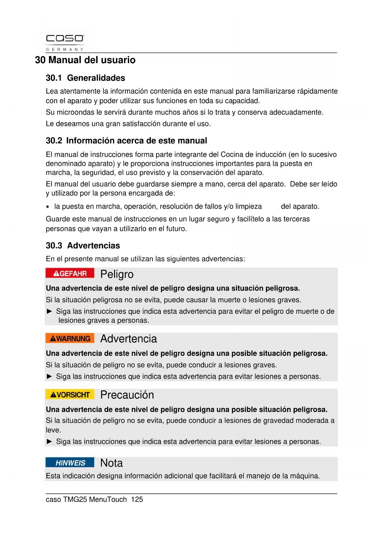 Encuentra gratis el manual del aparato TMG25 Menu Touch CASO en formato PDF.