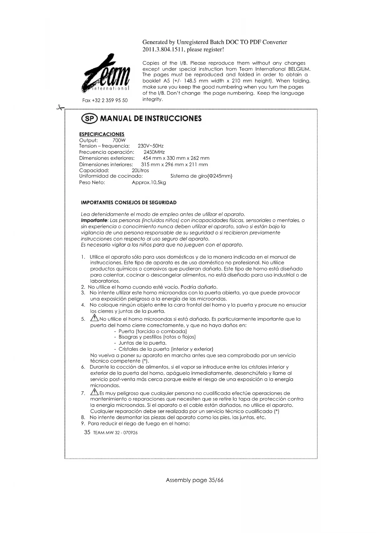 Encuentra gratis el manual del aparato MW 32 TEAM en formato PDF.