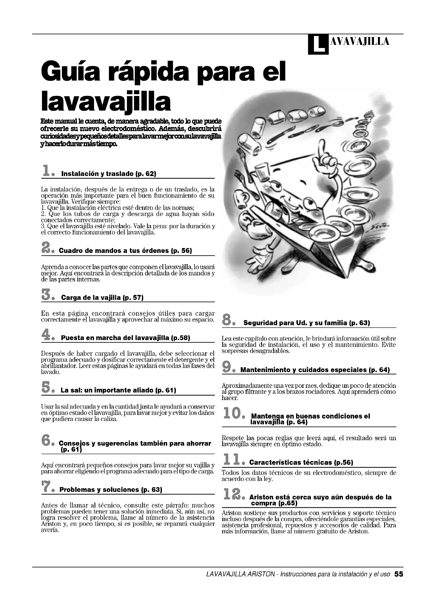 lavavajilla (p. 64)Respete las pocas reglas que leerá aquí, el resultado será unlavavajilla siempre en óptimo estado.