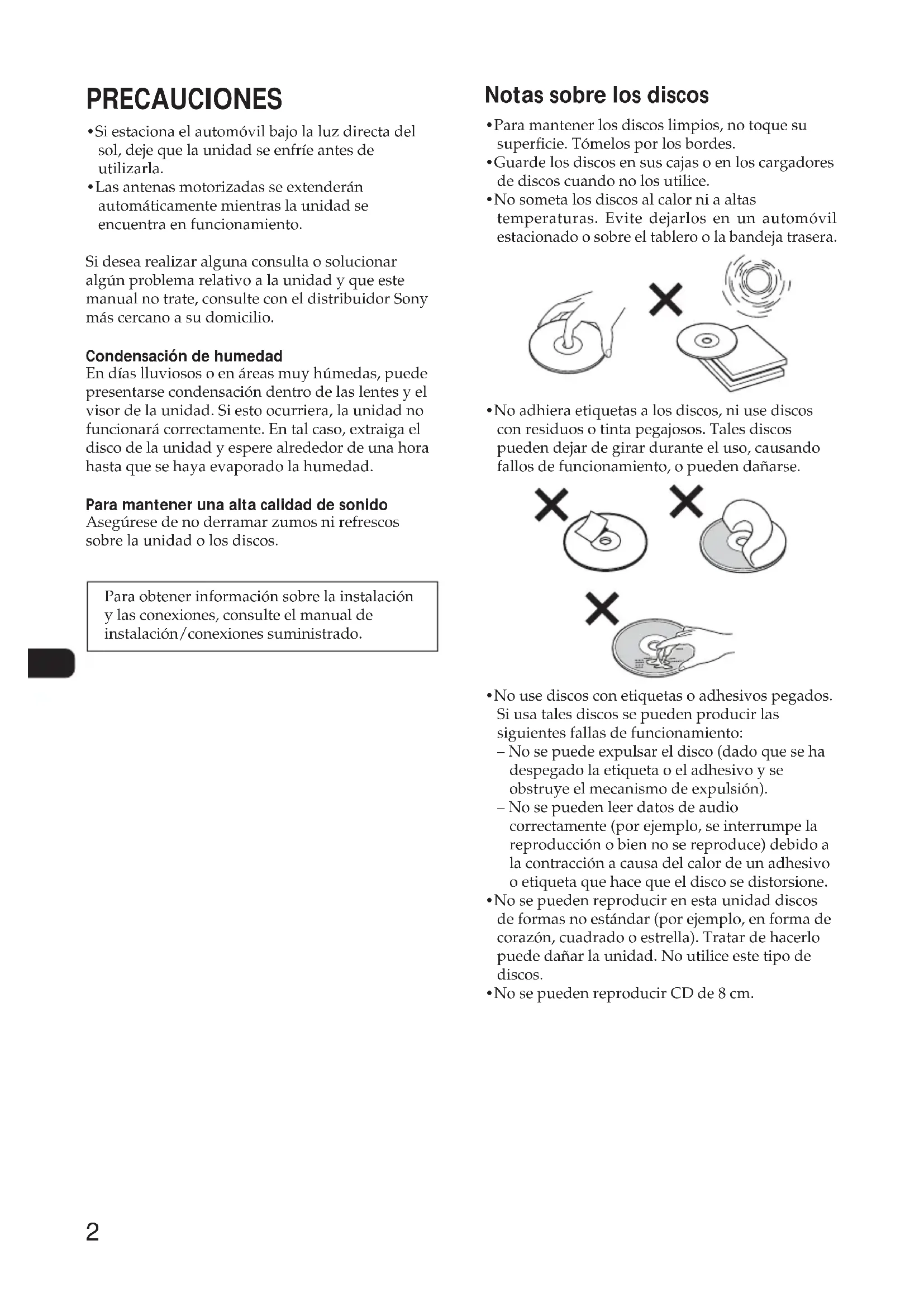 - No someta los discos al calor ni a altas temperaturas. Evite dejarlos en un automóvil estacionado o sobre el tablero o la bandeja trasera.