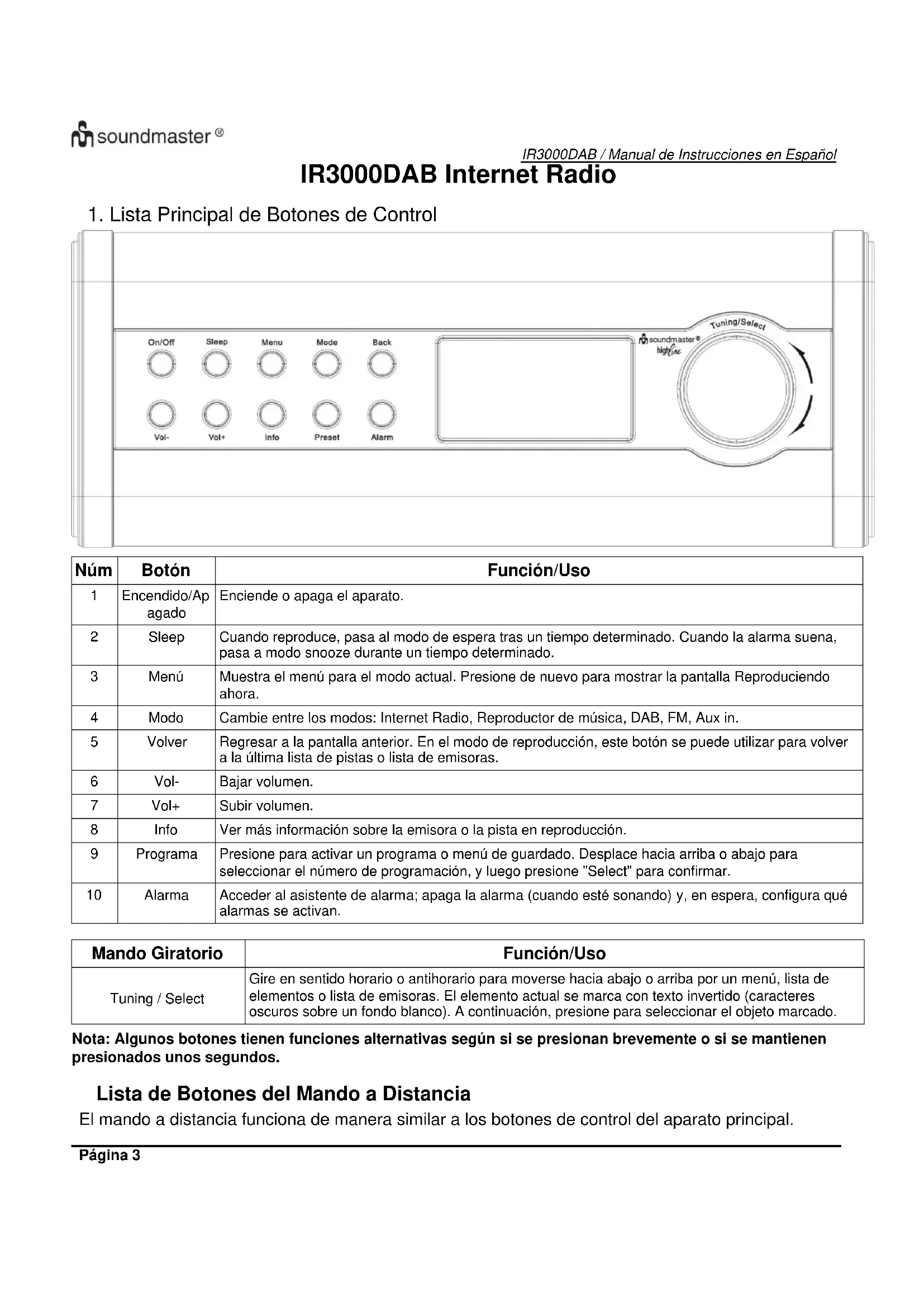 MANUAL DE USUARIO IR3000DAB Soundmaster
