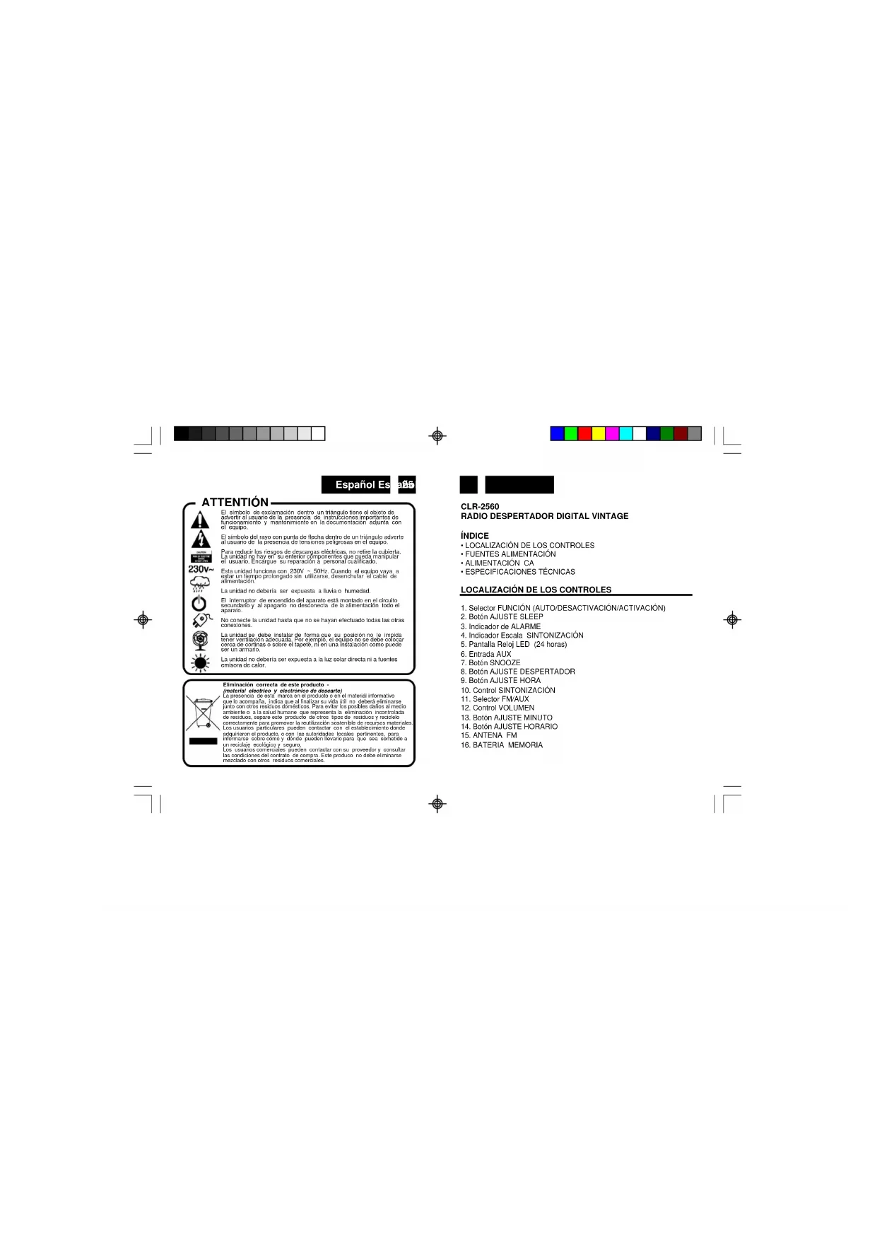 Nota: Cuando seajsua el Reloj y el Despertador recordar que este radio despertador posee un reloj de 24 horas.
