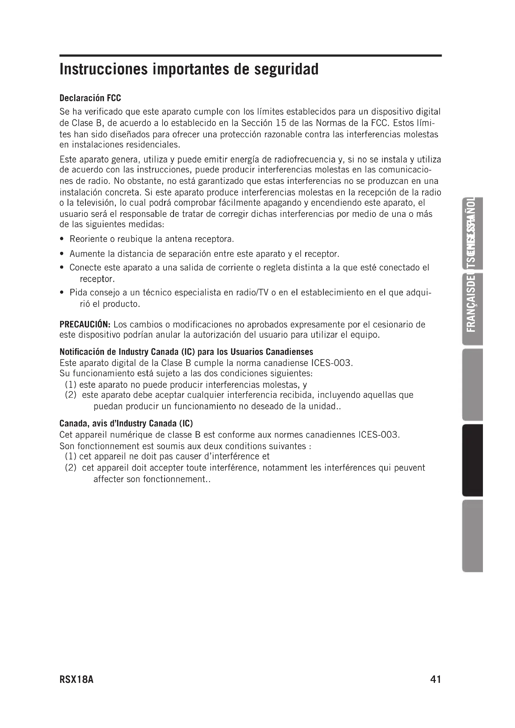 RSX18AInstrucciones importantes de seguridad