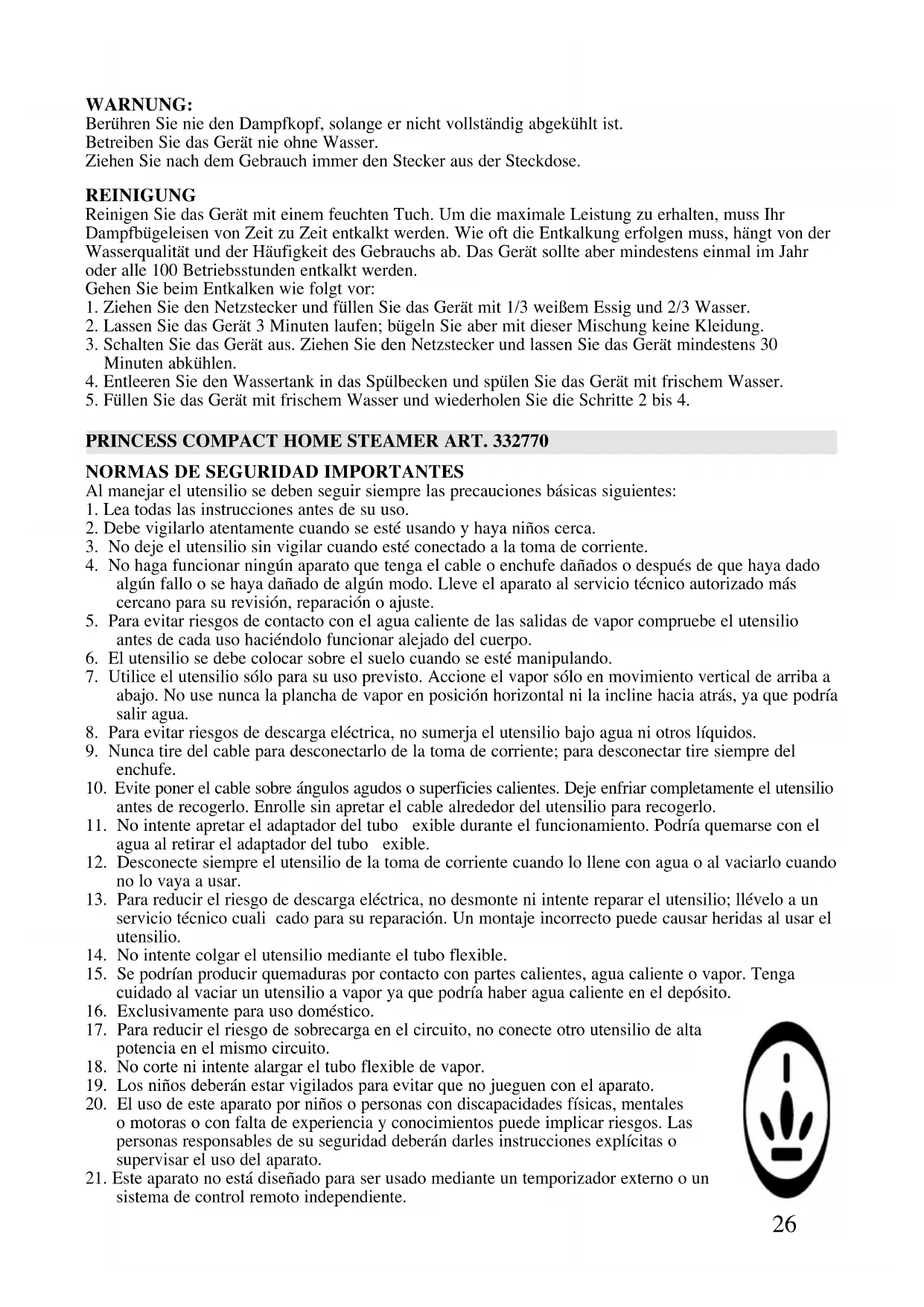 MANUAL DE USUARIO Compact Home Steamer 332770 PRINCESS