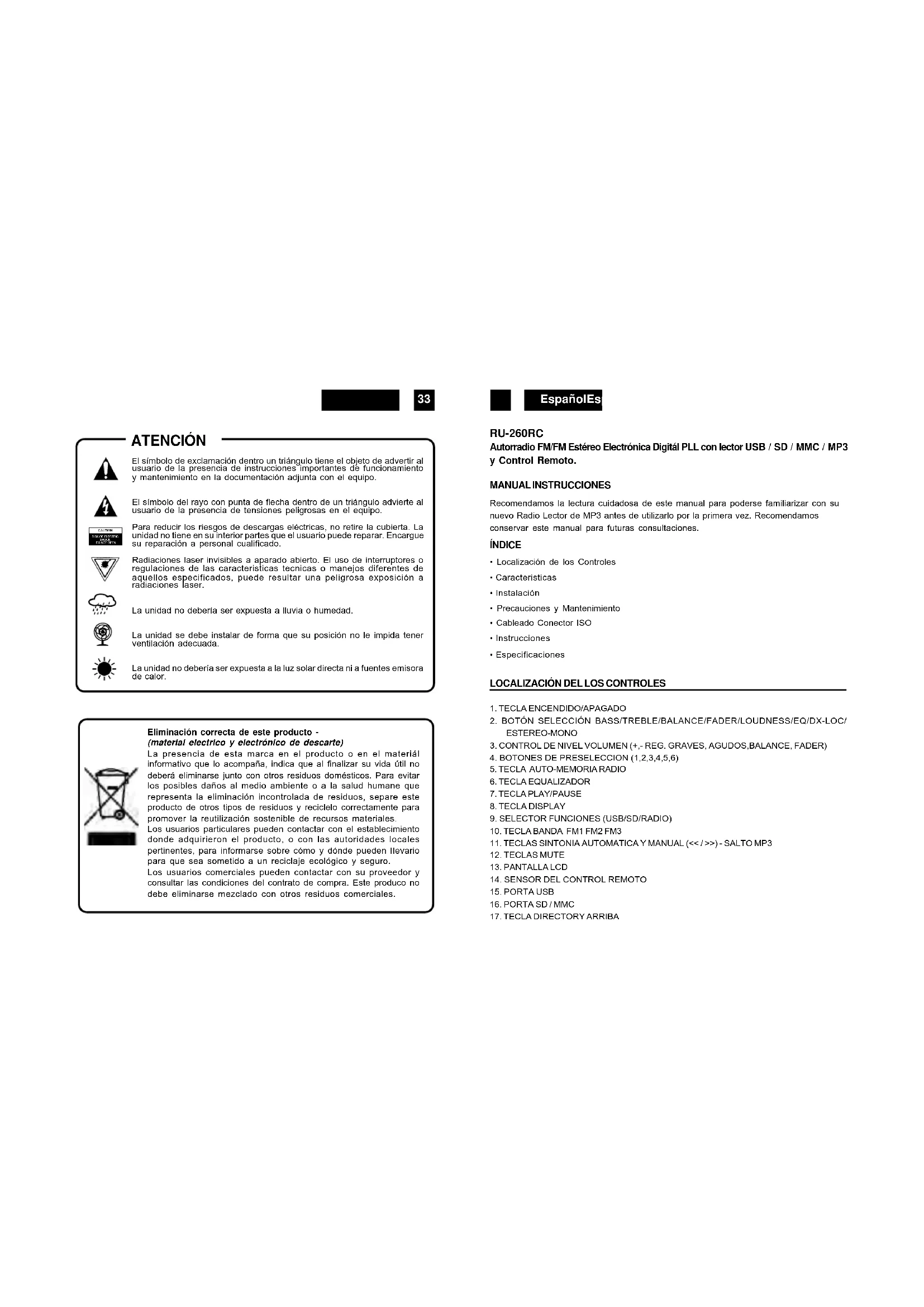 Recomendamos la lectura ciuidadora de este manual para poderse familiarizar con su nuevo Radio Lector de MP3 antes de utilizarlo por la第一位 vez. Recomendamos conservar este manual para futuras consuluciones.