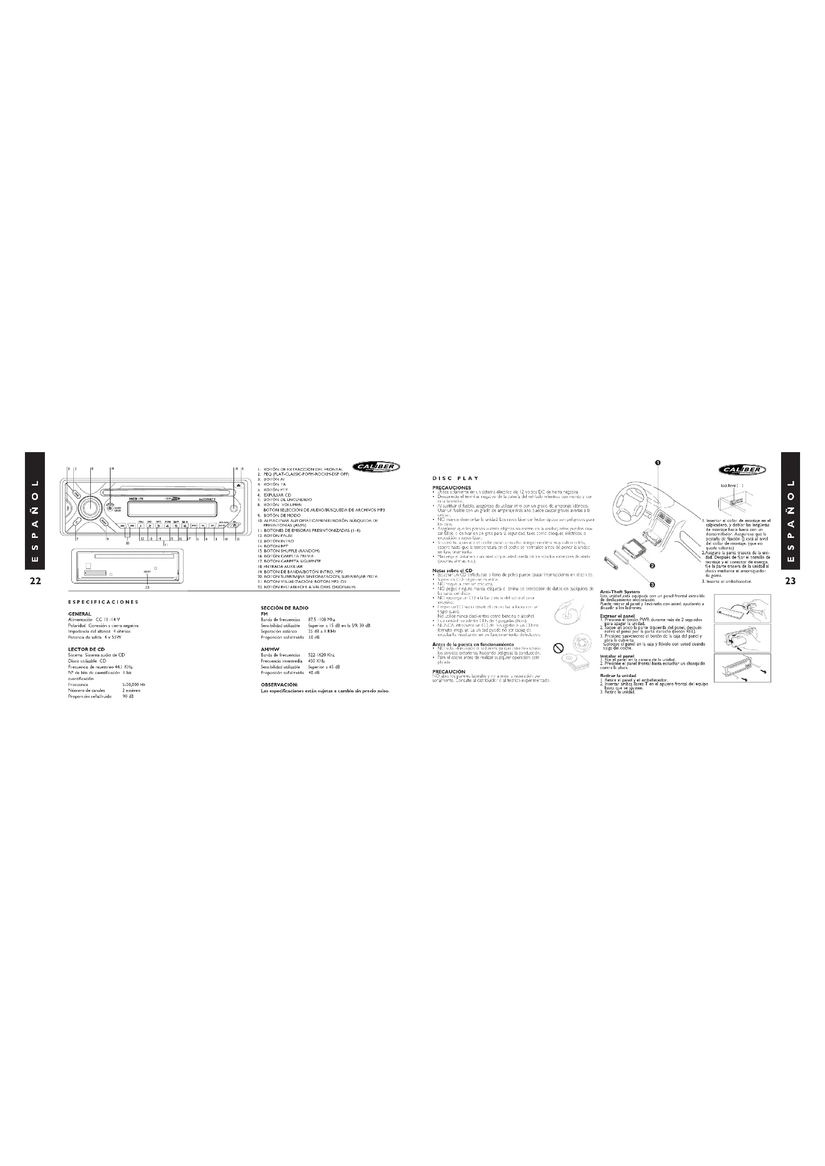 MCD 171 - Radio del coche CALIBER - Manual de uso y guía de instrucciones gratis