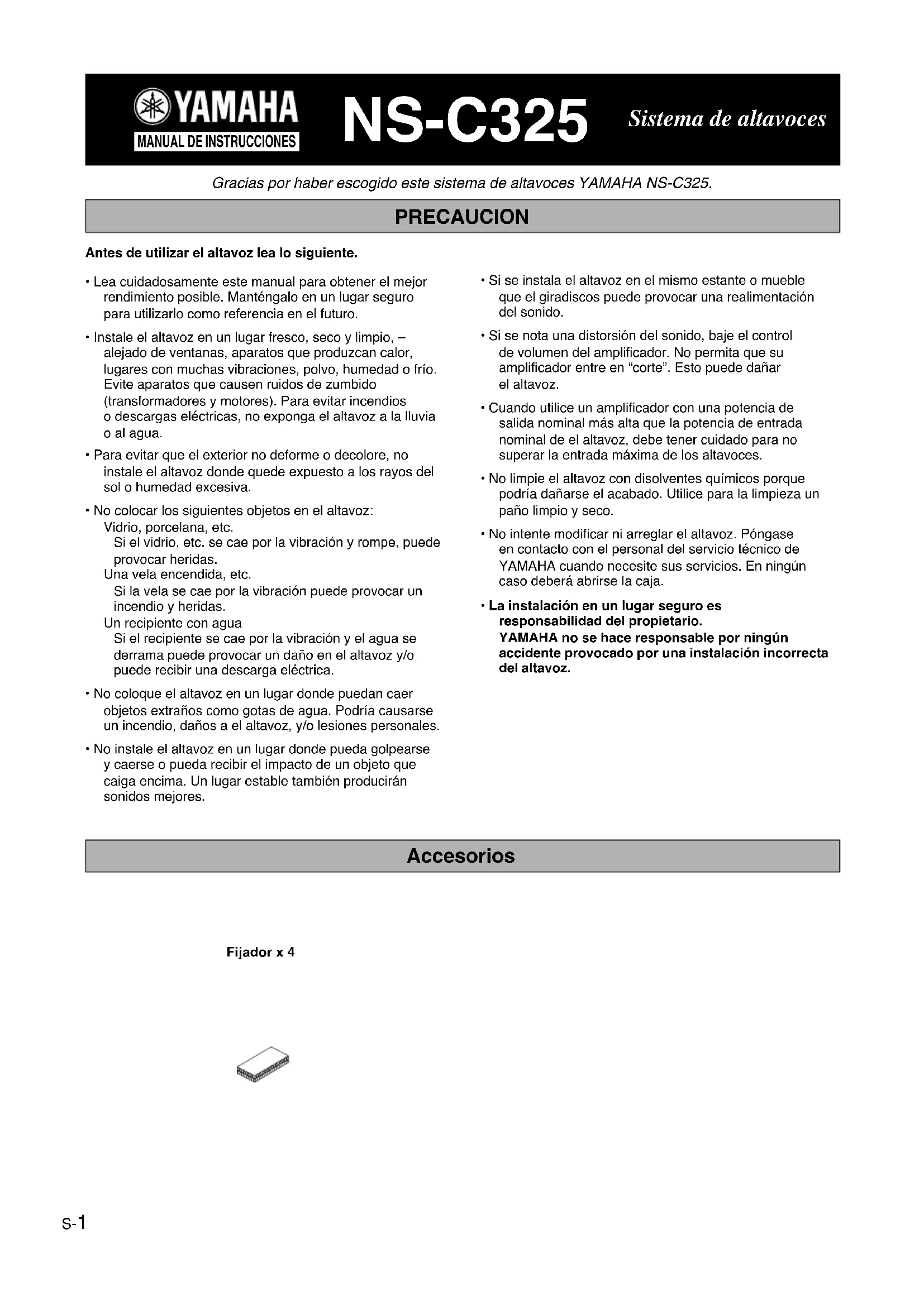 Gracias por haber escogido este sistema de altavoces YAMAHA NS-C325.