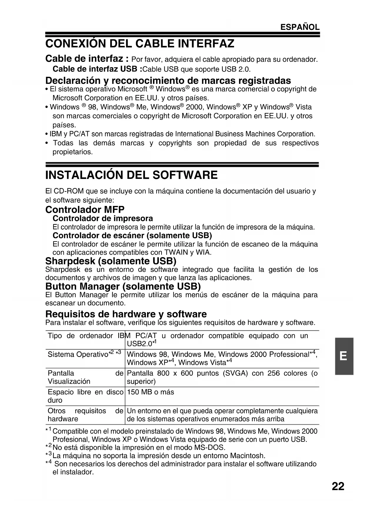 | Sistema Operativo*2 *3 | Windows 98, Windows Me, Windows 2000 Professional*, Windows XP*, Windows Vista*4 |