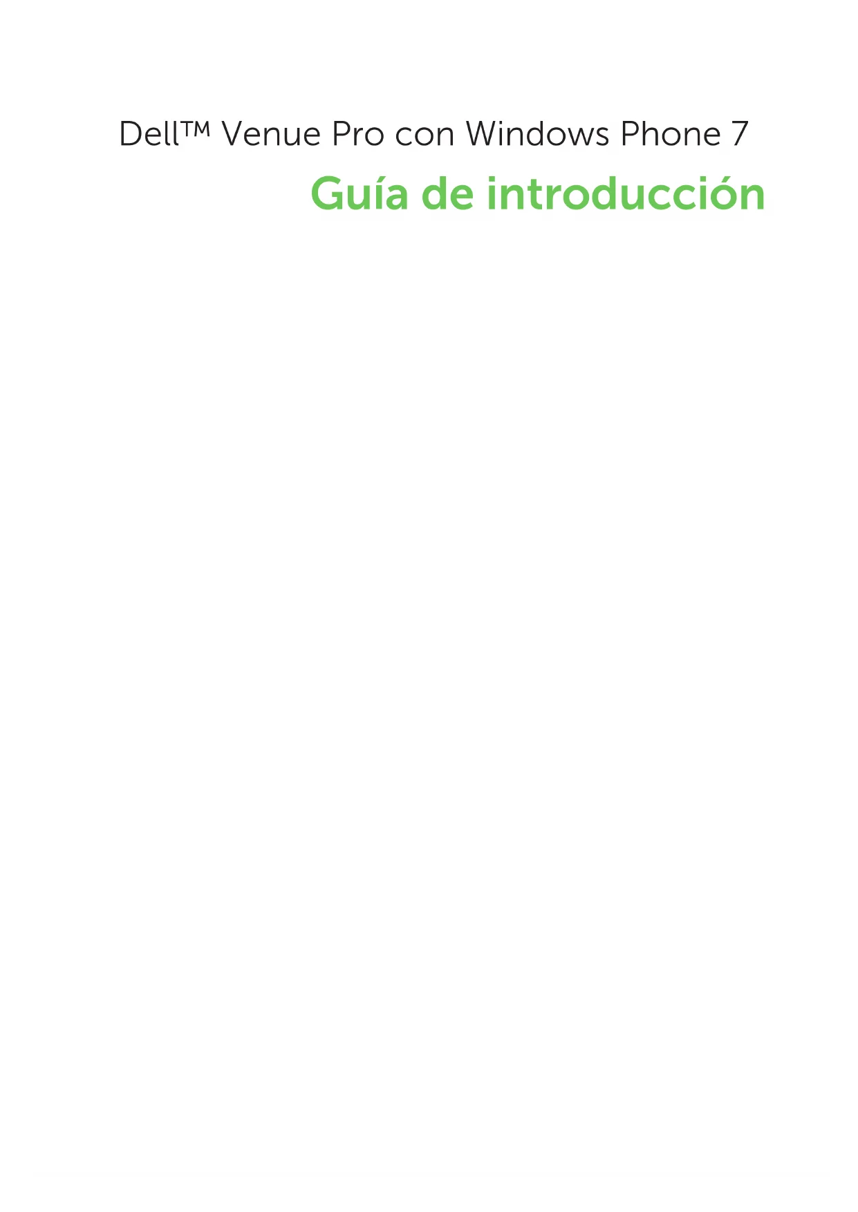 Toque en el campo 4. escribir un mensaje para componerlo. NOTA: Para agregar un archivo adjunto, toque y seleccione cualquier archivo guardado en el teléfono. Toque 5. para enviar el mensaje.97 Siempre sincronizado Para sincronizar música, vídeos, imágenes y actualizaciones del equipo al teléfono (y viceversa), necesitarás el software de Zune. Conecta el teléfono al 1. equipo mediante el cable. Entra en 2. www.windowsphone.com para instalar el software de Zune. Abre el software de Zune 3. y sigue las instrucciones para pasar la música, vídeos, imágenes y todo lo demás a tu colección. Haz clic en colección 4. y arrastra todo lo que quieras sincronizar al icono del teléfono que se encuentra en la parte inferior a la izquierda.98 Música + Vídeos El grupo música + vídeos permite acceder rápidamente a música, vídeos, podcasts, radio FM y aplicaciones multimedia. Para abrir el grupo música + vídeos, toque el mosaico Música + Vídeos en la pantalla de inicio. Para conseguir más música de Zune, toque marketplace. Puede sincronizar contenidos del ordenador con el teléfono usando el software Zune. Después de sincronizar música, vídeos y podcasts en el teléfono, aparecerá todo en el grupo música + vídeos. Conforme escuche música y vea vídeos, el grupo reflejará sus gustos mostrando las cosas que prefiera: sus canciones o álbumes favoritos, listas de reproducción y su historial.99 Más información Para obtener más información acerca del uso del teléfono, consulte el Manual del usuario que se encuentra disponible en support.dell.com/manuals. La información contenida en este documento puede modificarse sin notificación previa. © 2010 Dell Inc. Todos los derechos reservados. Queda estrictamente prohibida la reproducción de este material en cualquier forma sin la autorización por escrito de Dell Inc. Algunas de las funciones y servicios pueden variar en función del área, teléfono, portador, plan y versión del software Windows Phone. © 2010 Microsoft Corporationwww.dell.com | support.dell.com Printed in China. Imprimé en Chine. Gedruckt in China. Stampato in Cina. Impreso en China.