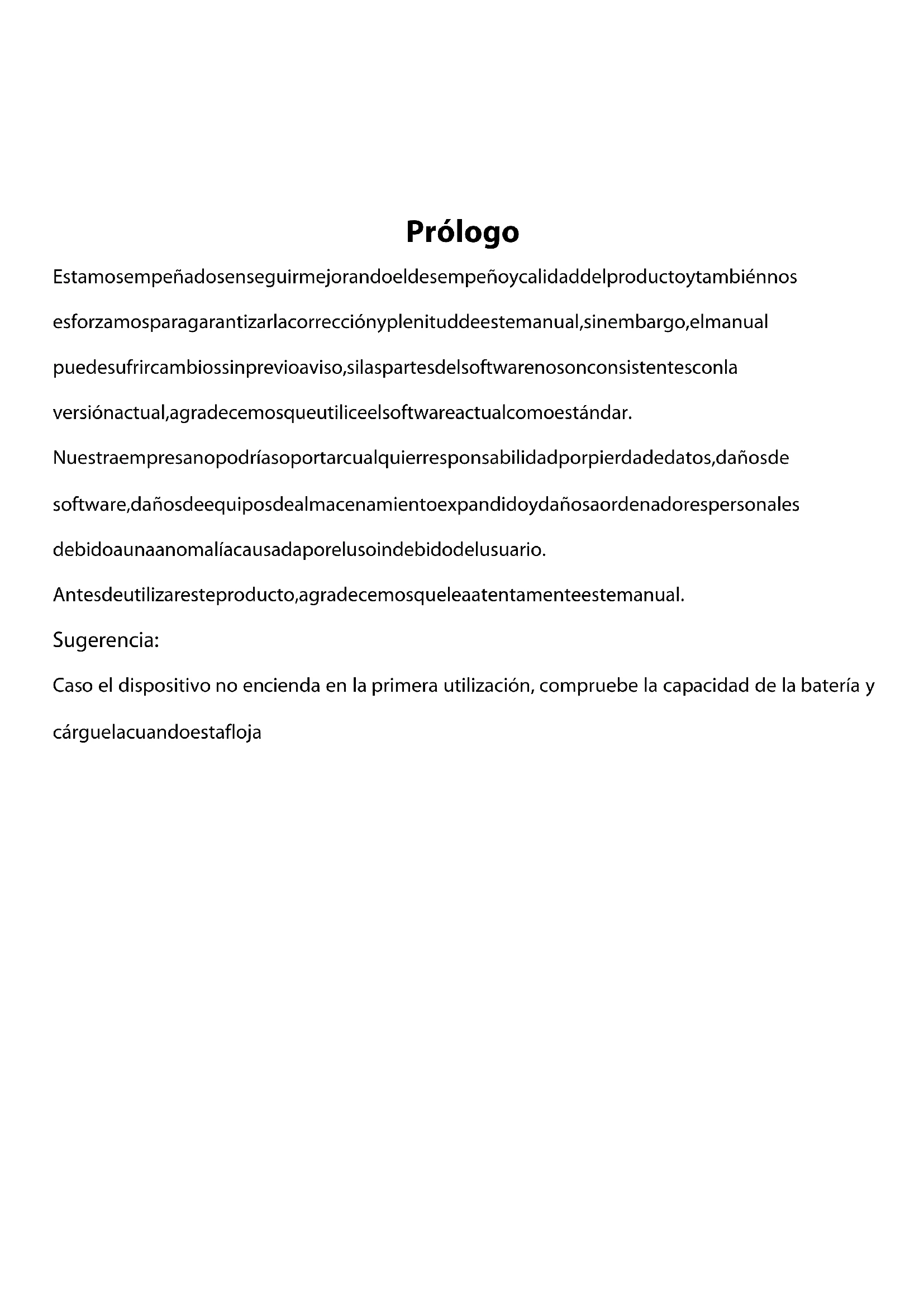Indicador esta luz indicadora al cargar y al encender/apagar◆ Entorno de trabajo Menú Principal: Lectura Actual, Directorio Artículo: Reciente, Libros, Imágenes, Música, Gestor de Ficheros, Definiciones◆ Reciente El ícono de Lectura Reciente en el interfaz principal muestra un libro leído recientemente. Haciendo clic en este libro abrirá las páginas de lectura anteriores para continuar leyendo. Reciente : Haciendo clic en “reciente” en el entorno de trabajo entrará directamente en la página de listados de lectura reciente, que guarda los registros de lectura más recientes. Y pulsando los botones arriba y abajo, pude verificar más registros de lectura Funciones MENU Borrar: eliminar ítems seleccionados Eliminar Todos: eliminar todos los registros listados Reproducción Multimedia: compruebe la música ejecutada por el reproductor multimedia y de fondo Descontectar: apagar la función del dispositivoLibros Los libros presentados son libros y carpetas guardadas en la carpeta de documentos guardados enlamemorialocalyenlatarjetaT;Elinterfazdelibrossoportalosmétodosdeestanteríay detalles del listado. Método de la estantería: si los libros tienen cubiertas, la presentación se hará a través de las cubiertas; sino, cubiertas estándar se agregarán, las cuales incluyen nombres, formatos y tipos del libro. Método de detalles del listado: presenta tipos, tamaños y tiempo de construcción de los libros.Informaciones importantes : F ormatos de cubierta actualmente soportados incluyen FB2, PDF, EPUB. Otros formatos no se podían reconocer hasta ahora y solo se utilizan en cubiertas estándar. Mis Libros Menú Funciones; Buscar: Busca todos los ficheros y carpetas en los contenidos. Soporta la busca por nombre de carpeta por sufijo. Salir de los resultados de busca a través de la tecla regresar Ir a la página bajo este menú de volver la página, pasará directamente a las páginas de punto Borrar: eliminar ítems seleccionados Modo de estantería y de listado: cambiar mis libros en la presentación en método de estantería o método de listado Ordenar: Soporta la ordenación por nombre de fichero, tamaño del fichero, tipo de fichero, tiempo de construcción y descendente y ascendente. La ordenación por defecto es por nombre de fichero y ascendente. Propiedades: comprobar propiedades de los ítems seleccionados. Las informaciones contienen el nombre del fichero, tipo de fichero, tamaño del fichero, camino y tiempo de construcción Reproductor multimedia: Puede encender el reproductor multimedia para reproducir o detener la reproducción de música◆ Lectura: Este dispositivo soporta los siguientes formatos: TXT, EPUB, PDF, FB2, HT ML, HTM, PDB, RTF, MOBI, DJVU, DJV, CHM, RAR, ZIP, DOC Interfaz de lectura:La interfaz de lectura presenta el ratio de velocidad de lectura, total de páginas y la página de lectura actual. Todos los libros leídos pueden gravar las últimas páginas leídas tras cerrar y abrir de nuevo. Utilice las teclas de volver para ejecutar el viraje de lectura. Informaciones importantes : Las páginas Nº puede que no se presenten inmediatamente al abrir los libros. Espere um momento para calcular el número de página. Cuanto más contenidos tenga el libro, más tiempo tardará a mostrar. Funciones ejecutivas en el Interfaz de Lectura: Lectura Menú Funciones Saltar página: Pasar a página inicial, última página, índice (soloíndiceincluidoen los libros) y páginas designadas. Buscar: introduzca las palabras-llave y pulse confirmar para que sean introducidas, los contenidos buscados serán presentados a través de la marca inversa de blanco y negro. Definición de página: puede ajustar el tamaño de las letras, escala de zoom, espacio entre líneas, márgenes, conjunto de tipos de letra Agregar Marcadores: Adicionar marcadores a páginas de lectura actuales y señales de marcadores se presentan en la esquina superior de la página Comprobar Marcadores y Anotaciones: interfaz de marcadores y anotaciones presenta con éxito los marcadores y anotaciones agregados. Pulse las teclas denavegación izquierda y derecha para cambiar el interfaz del listado de marcadores y anotaciones. La función menú soporta a opción de eliminar apenas y elim inar todos Abrir y Cerrar Viraje Automática: abrir y cerrar viraje automática. Las d efiniciones relevantes de viraje automática pueden seguir las instrucciones de definición de lectura. Girar: seleccione la dirección correcta que pretende e, enseguida, pulse ok Definiciones de Lectura: Definir lectura actual por lenguas, velocidad y volumen. Soporte actual de chino e inglés. Definiciones de Viraje Automática: definir viraje automática. La unidad es por segundo Propiedades de Libros: comprobar propiedades de los ítems seleccionados. Las informaciones contienen el nombre del fichero, tipo de fichero, tamaño del fichero, camino y tiempo de construcción. Reproducción Multimedia: compruebe la música ejecutada por el reproductor multimedia y de fondo◆ Imagen Este dispositivo soporta los formatos y miniaturas de imágenes mencionados abajo