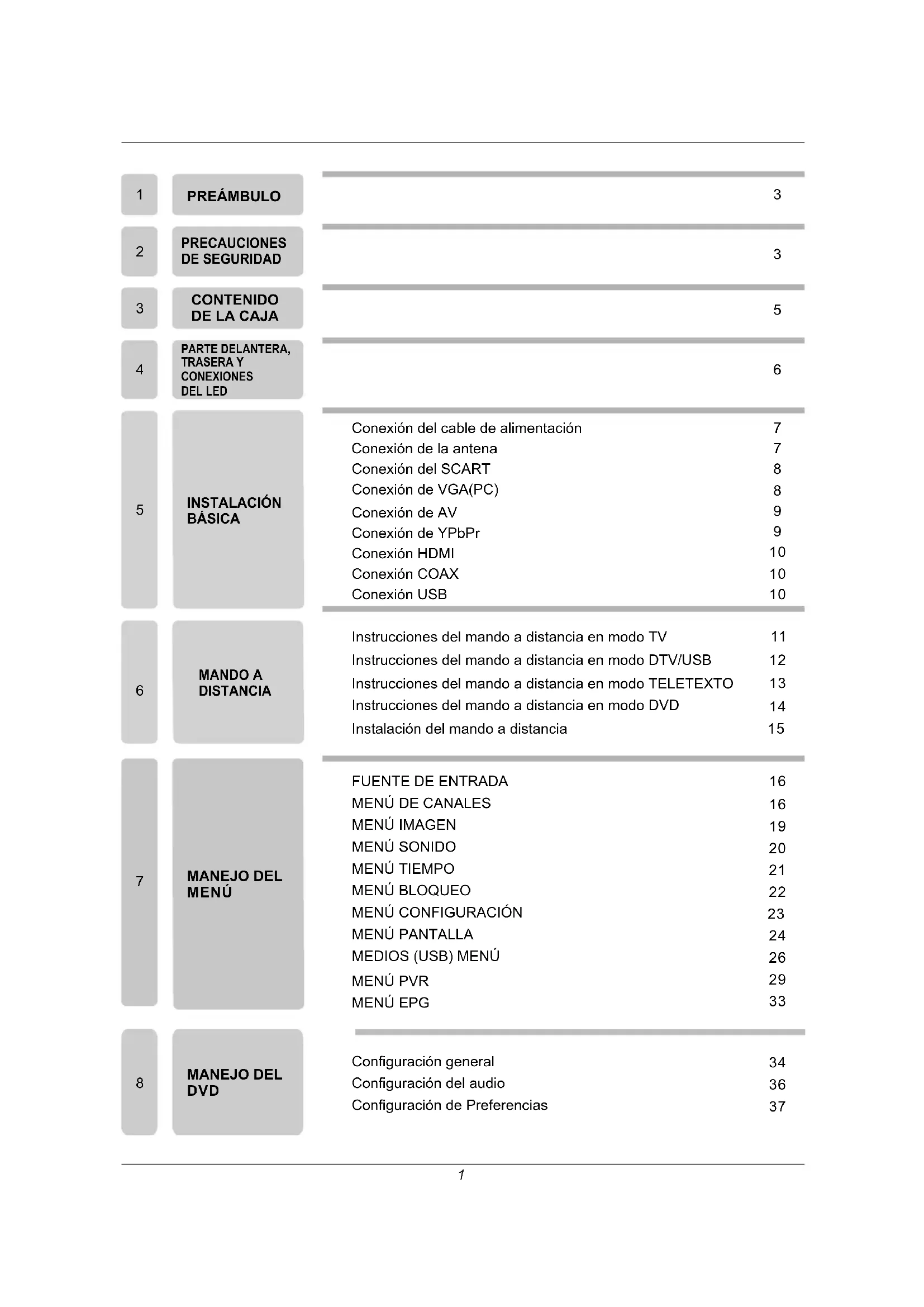 91.PRÓLOGO ¡Gracias por comprar este TV! Lea atentamente este manual antes de utilizar el TV. Asegúrese de que el TV no ha sufrido ningún daño durante el transporte. Si el TV esté averiado, no lo instale y póngase en contacto con el vendedor. Compruebe que tienen todos los accesorios según el modelo.