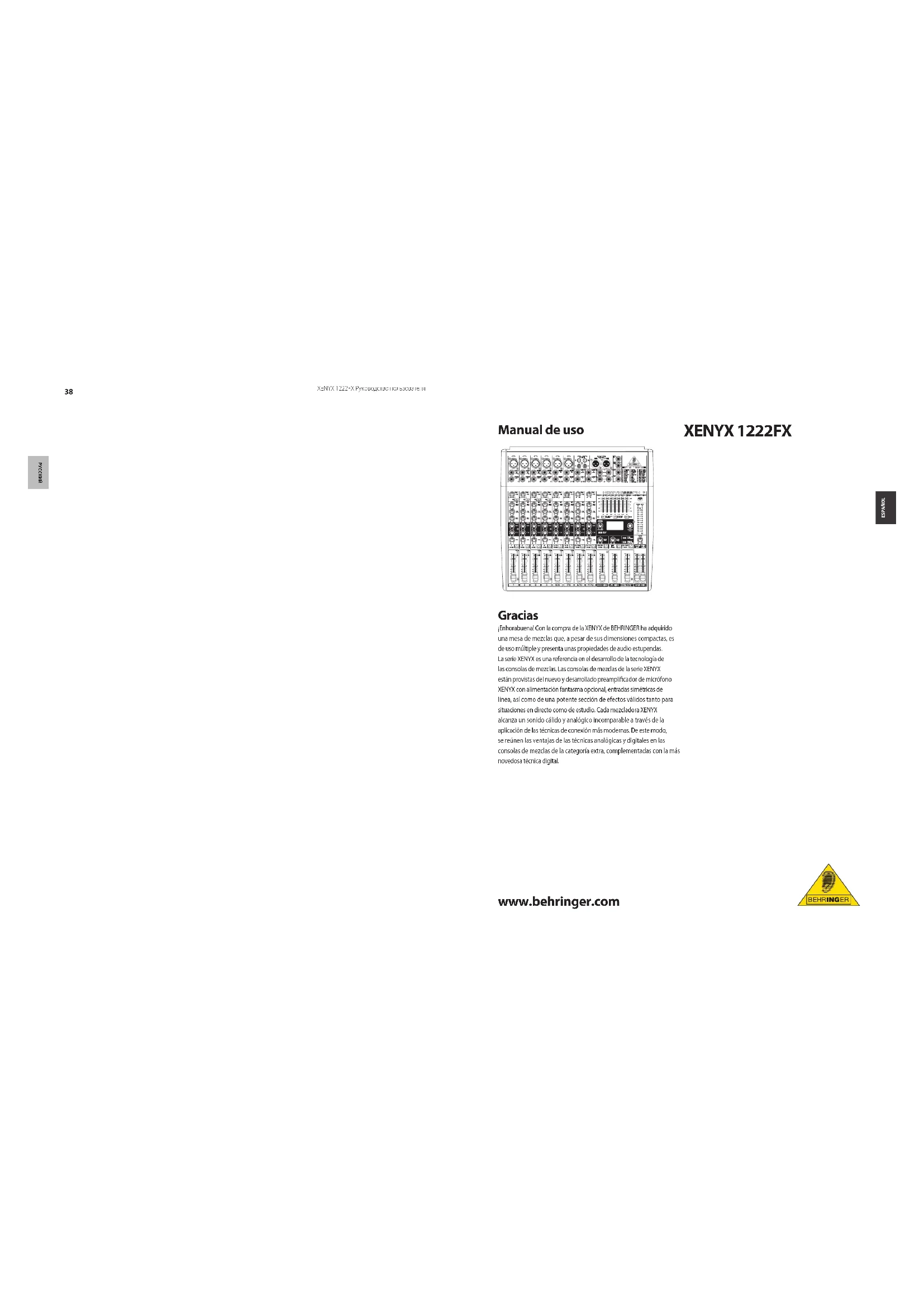 MANUAL DE USUARIO Xenyx 1222 FX BEHRINGER