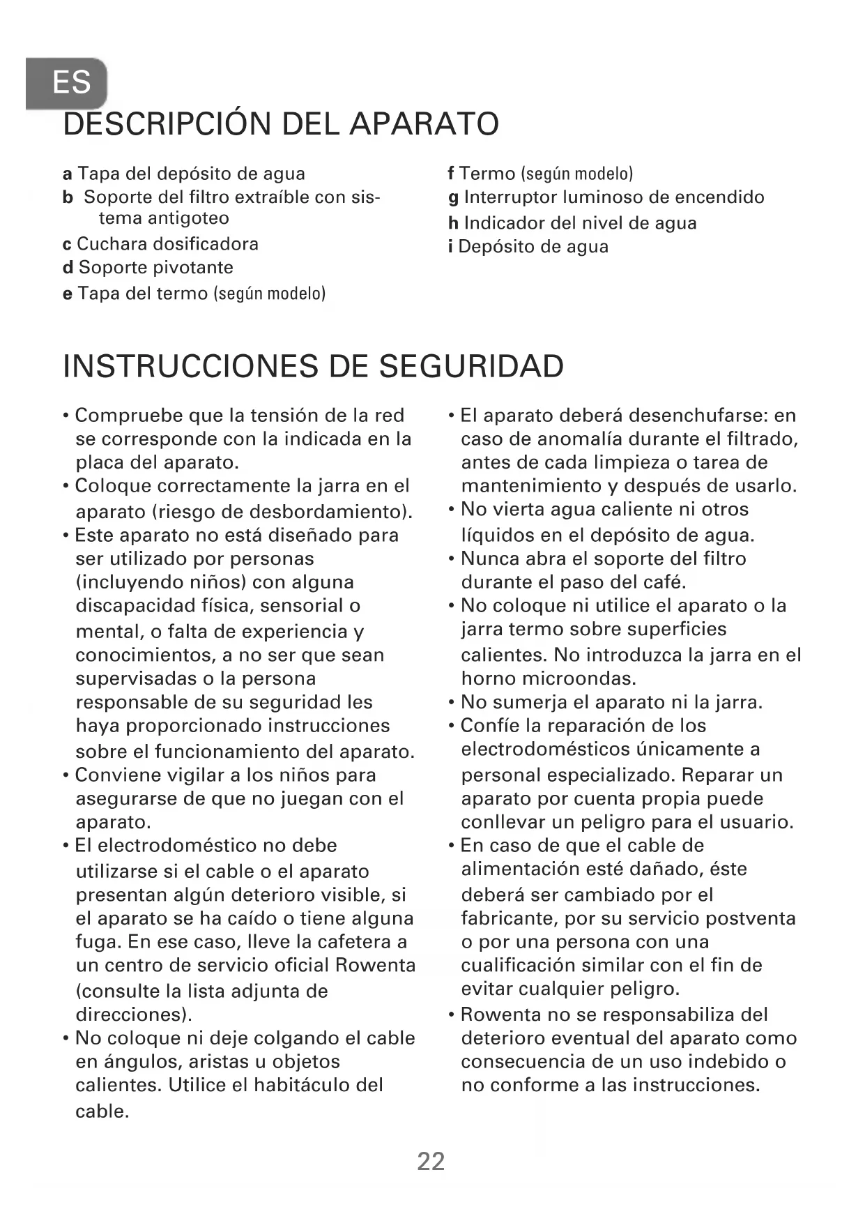 - Rowenta no se responsabiliza del deterioro eventual del aparato como consecuencia de un uso indebido o no conforme a las instrucciones.